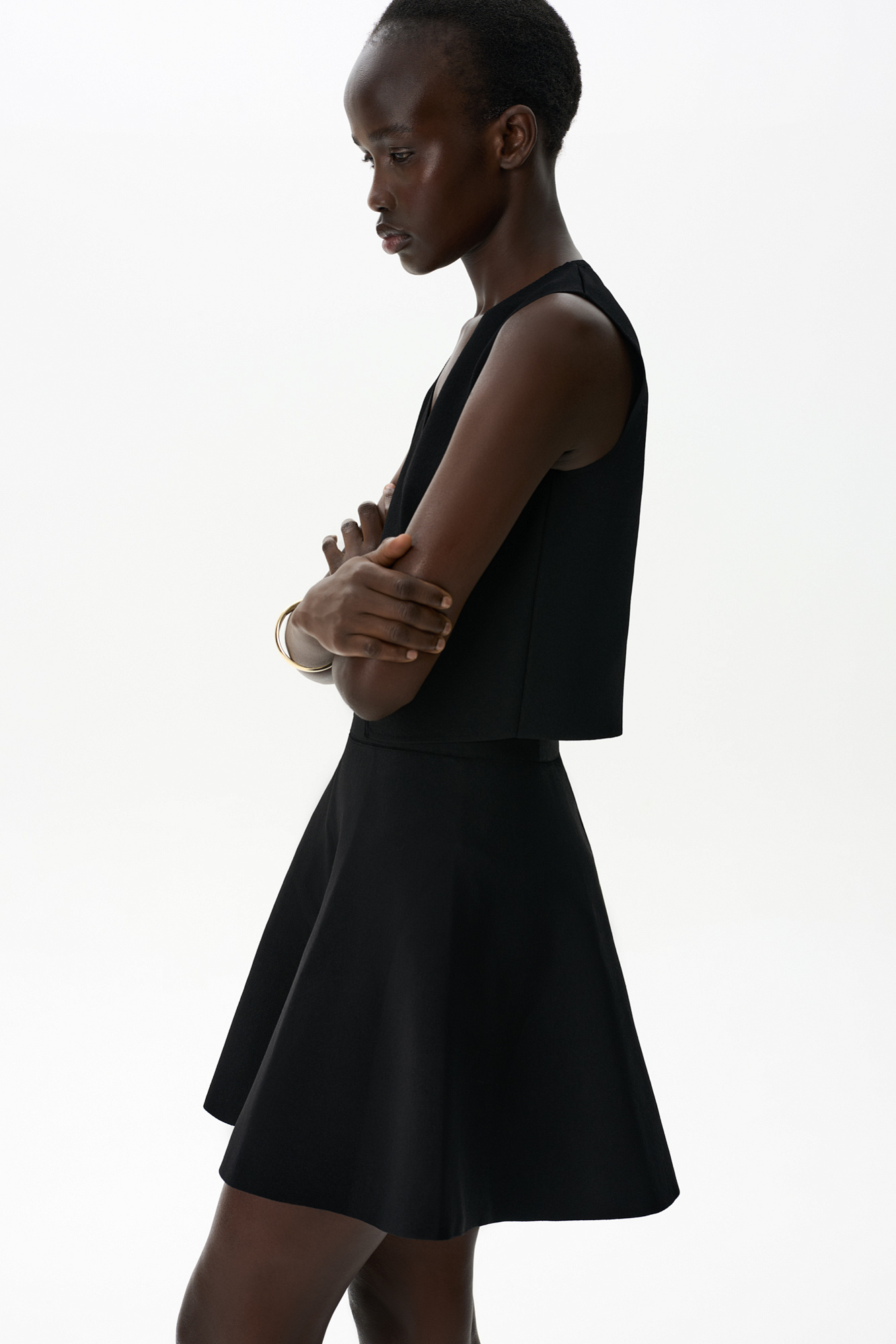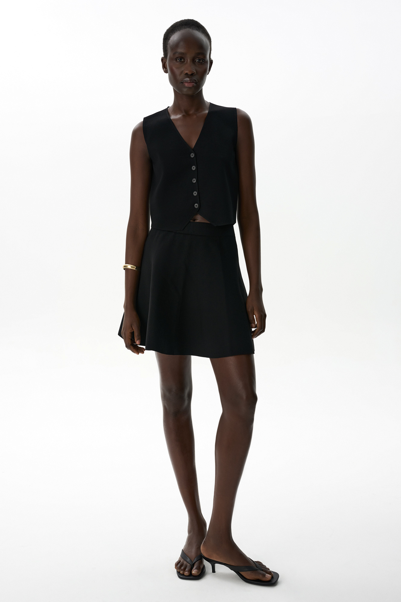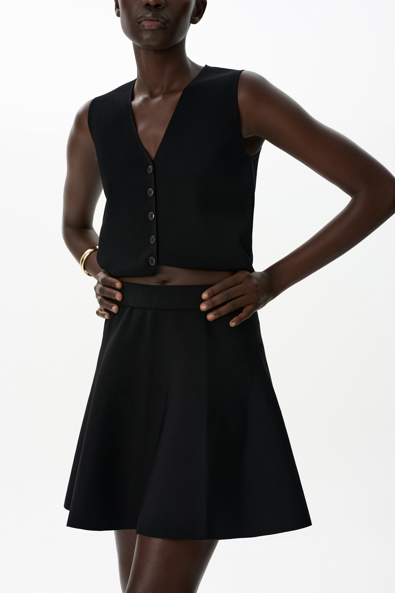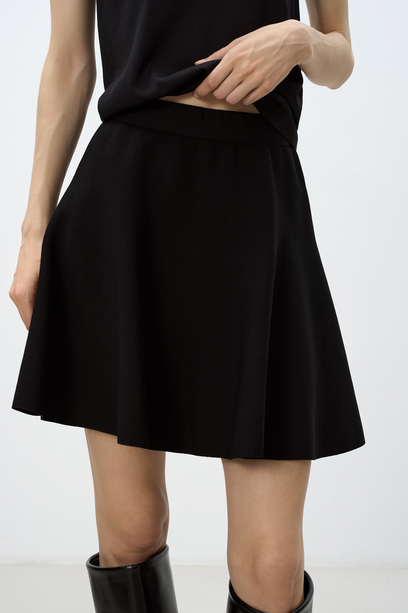 Трикотажная юбка длины мини из вискозы. Модель А-силуэта с эластичным поясом на резинке.