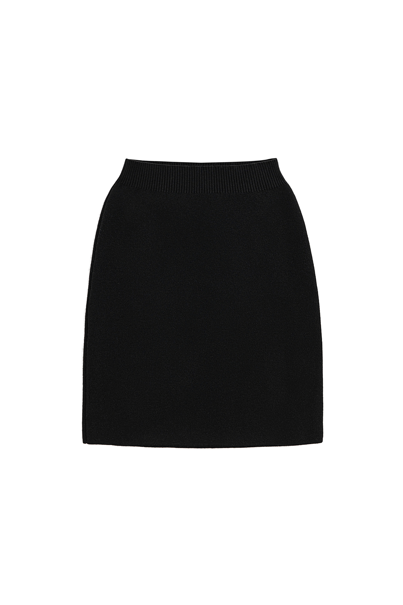 Трикотажная юбка длины мини из смесовой шерсти с добавлением кашемира. Модель приталенногоо силуэта с эластичным поясом в рубчик.