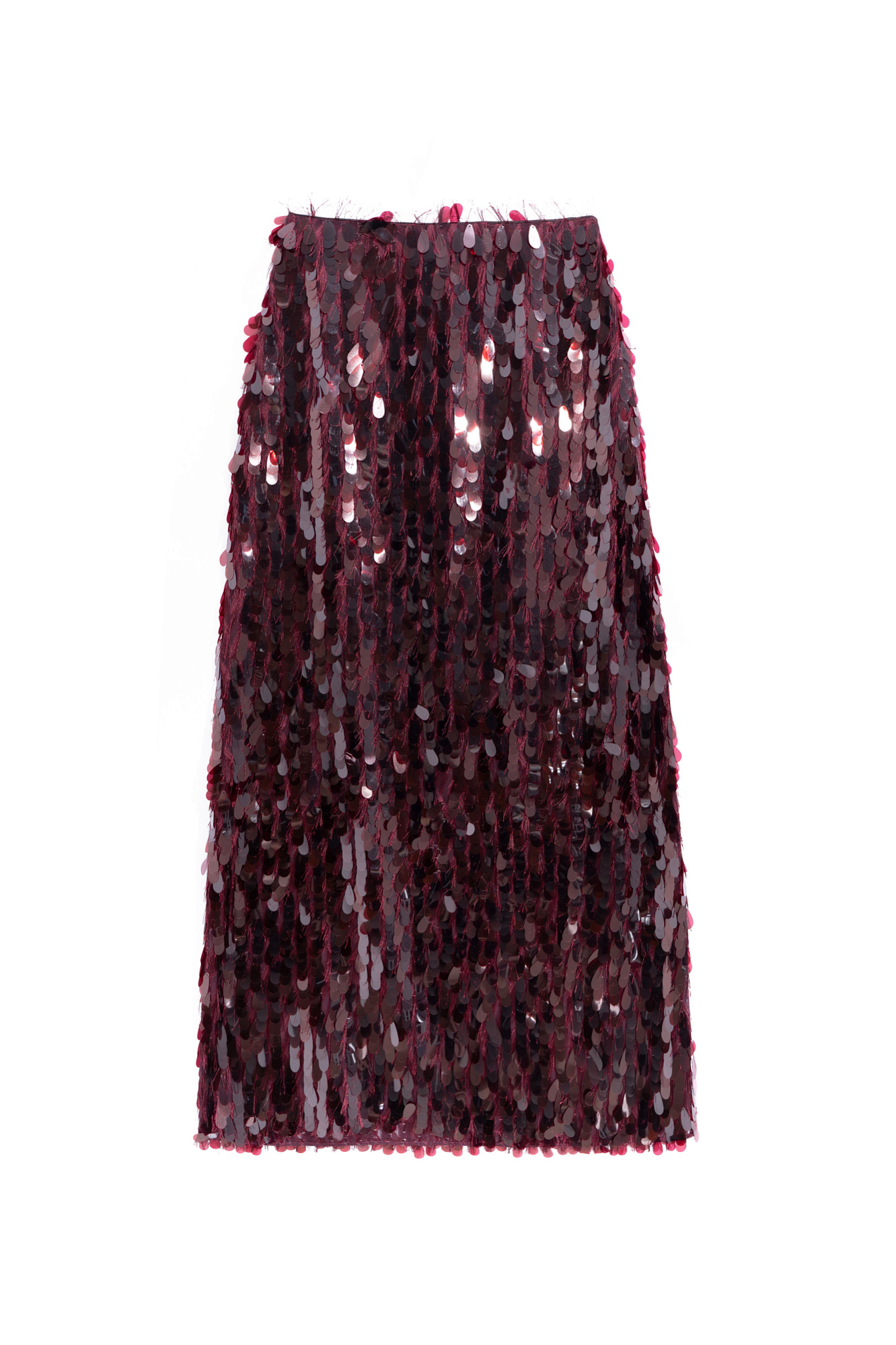 Юбка длины макси, декорированная пайетками-капельками. Изделие на подкладке. Застежка на потайную на молнию.