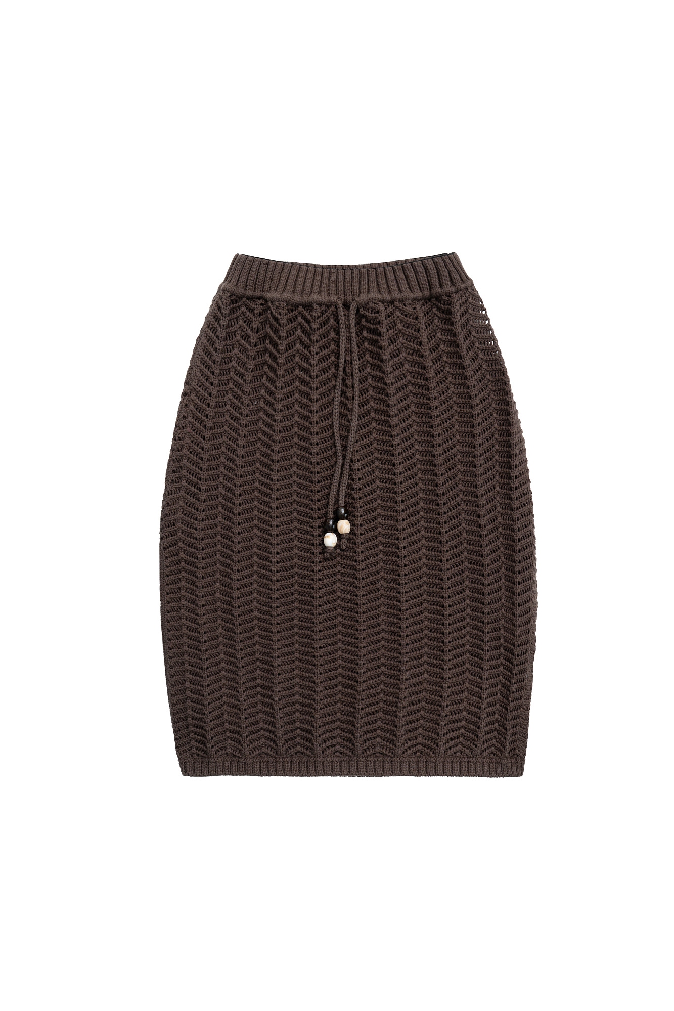 Трикотажная юбка длины мини из хлопка. Модель по фигуре, с эластичным поясом в рубчик, дополненным кулиской. Изделие выполнено узором "ёлочка".