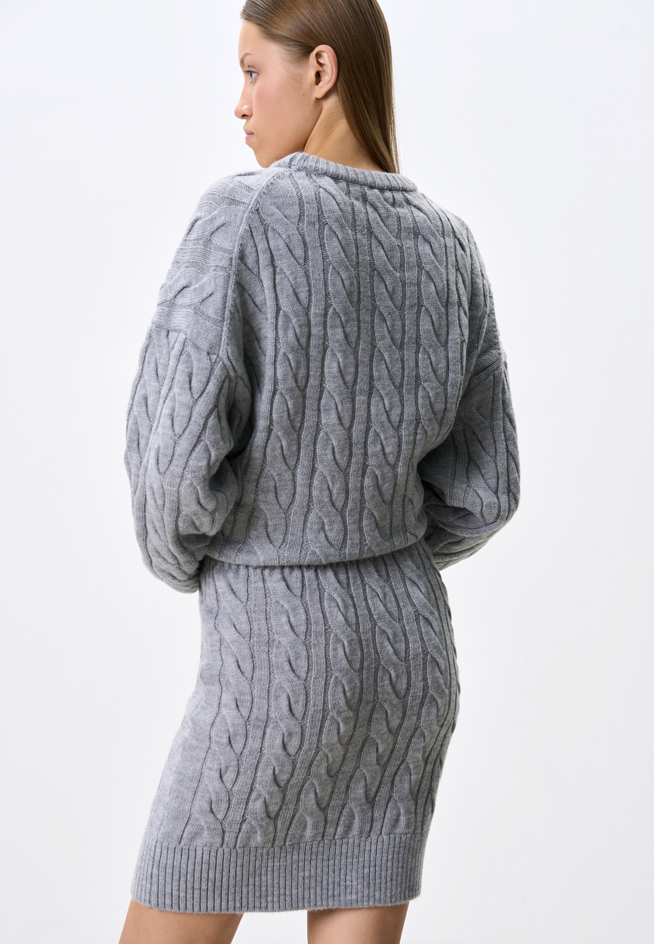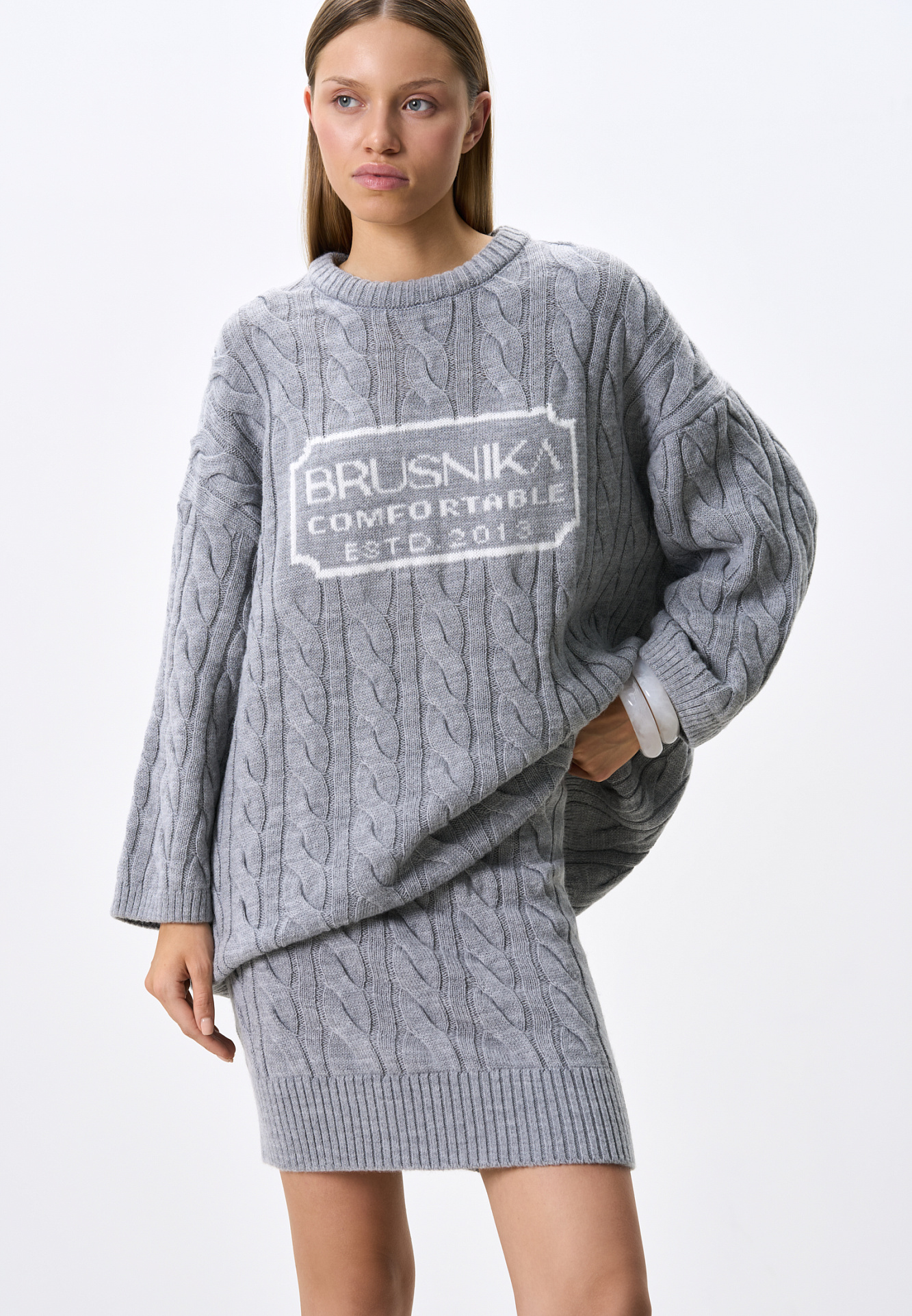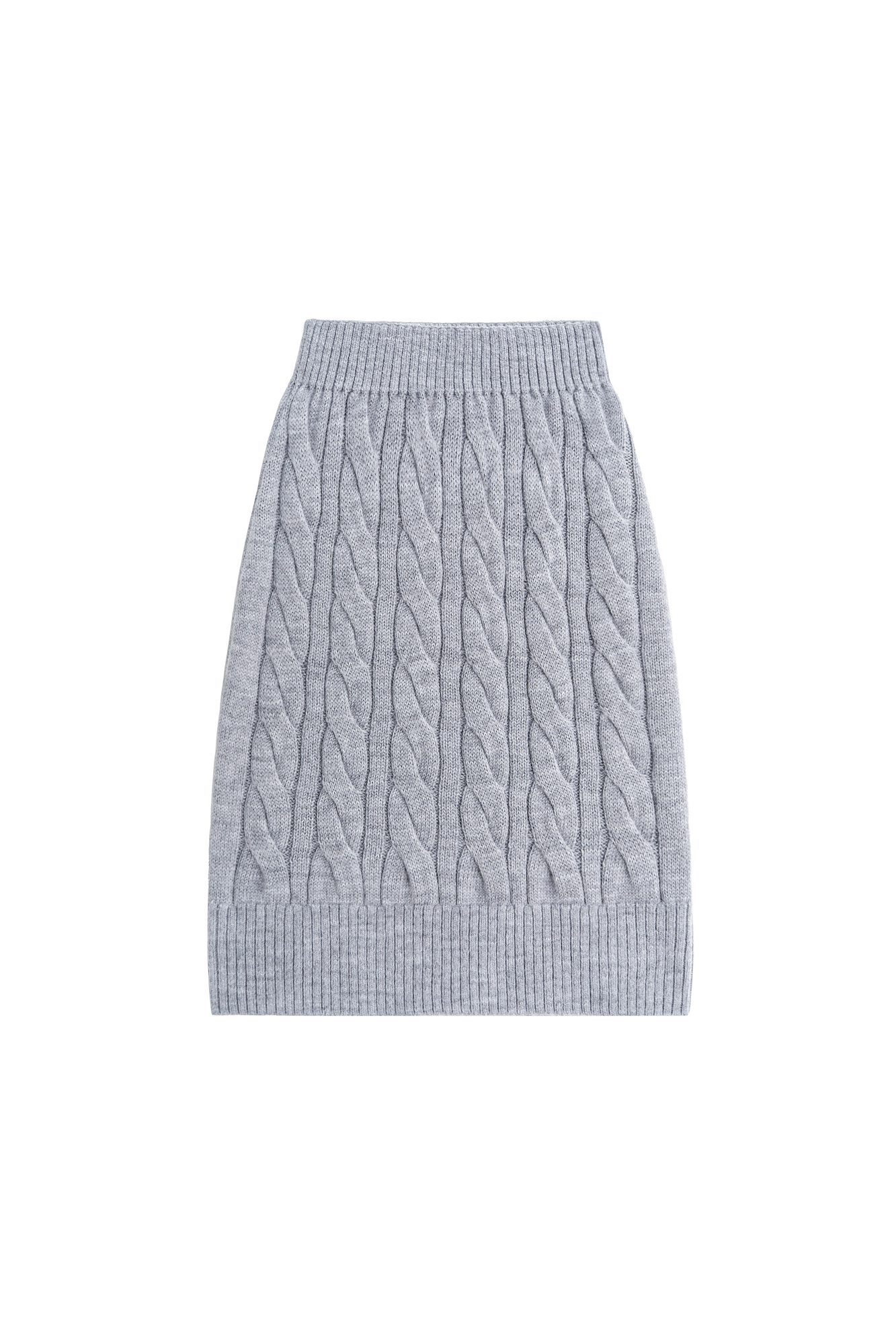 Трикотажная юбка длины мини с объемными косами из мягкой шерсти. Широкий эластичный пояс на кулиске. Дополнить образ можно джемпером в том же стиле.