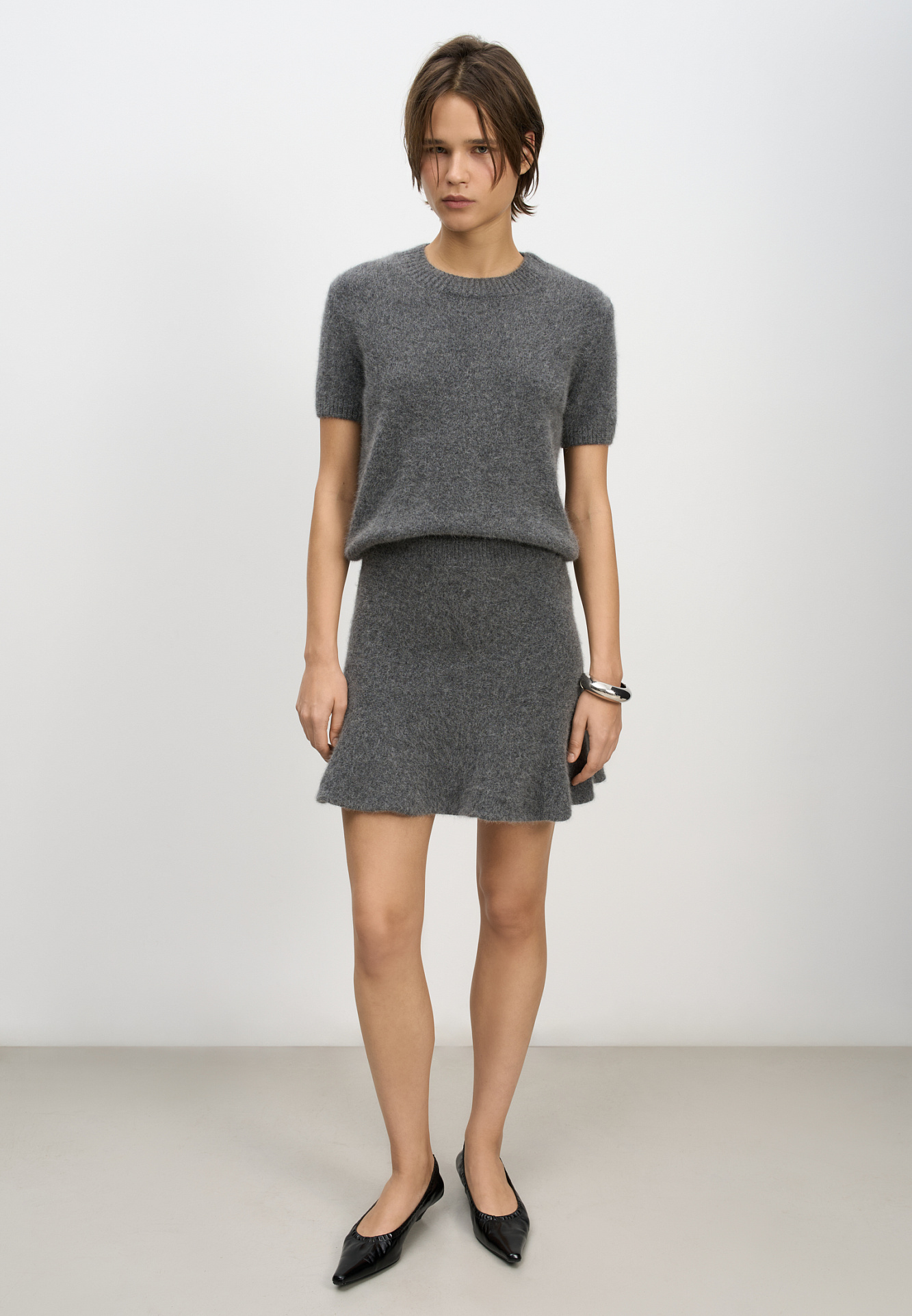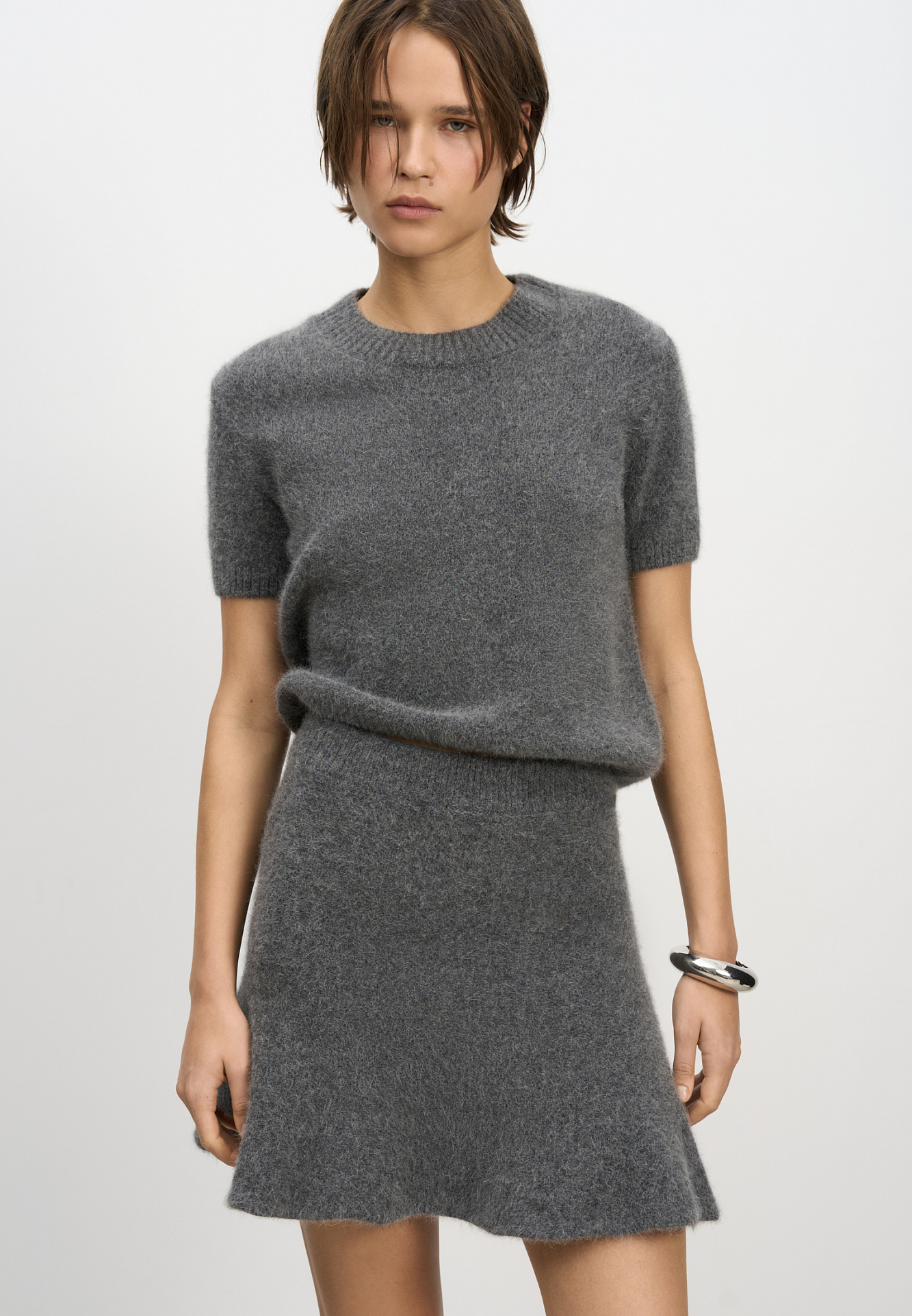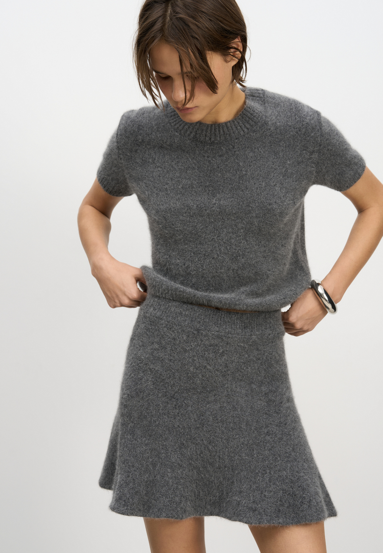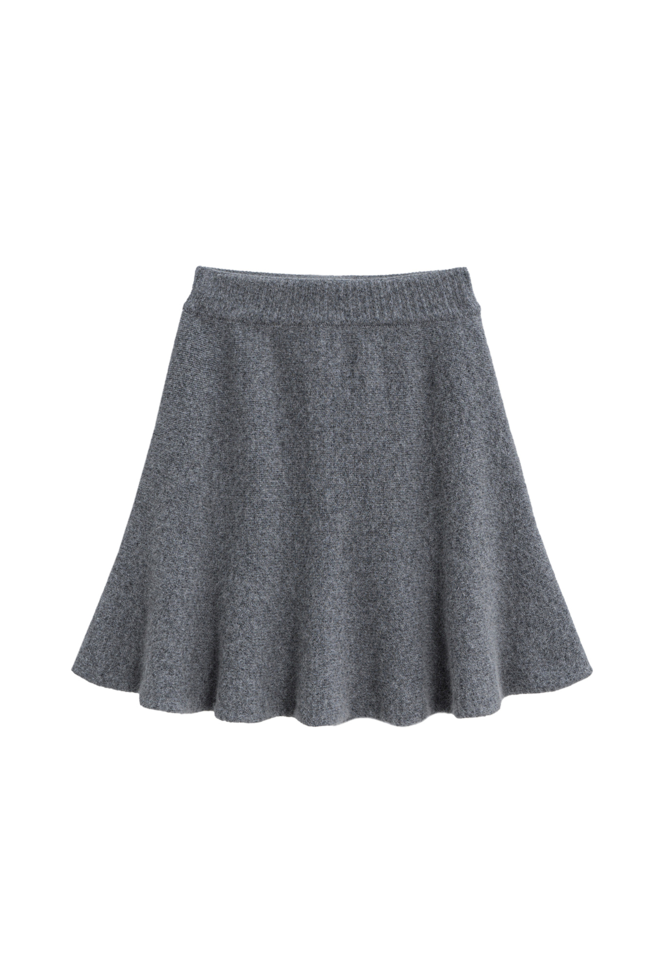 Трикотажная юбка длины мини из шерсти и пуха лисы. Модель полусолнце с эластичным поясом на резинке.