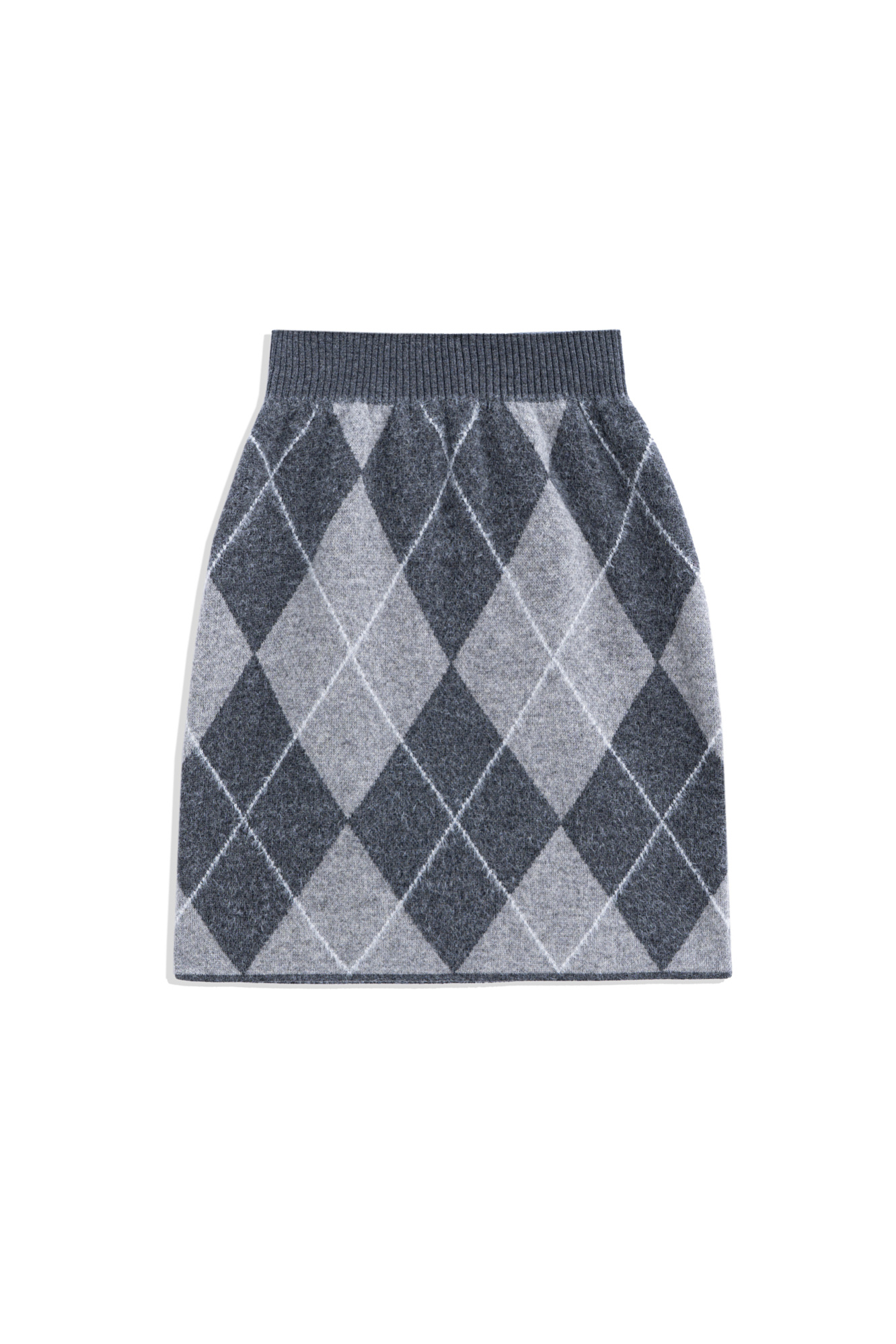 Трикотажная юбка мини из шерсти и кашемира с узором аргайл. Модель по фигуре с широким эластичным поясом в рубчик.