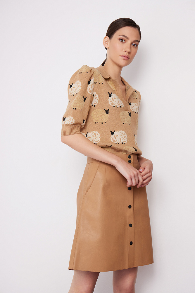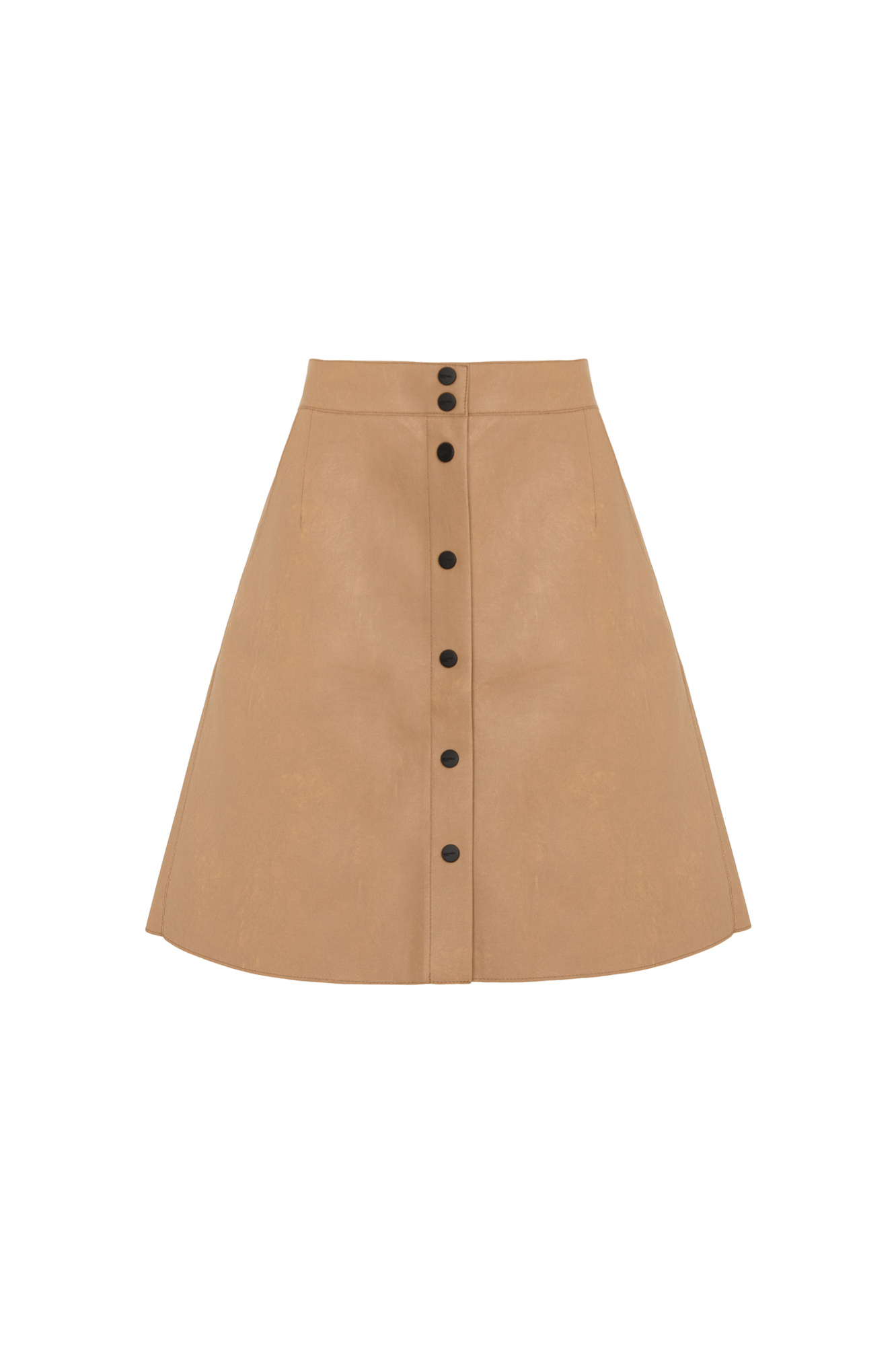 Мини-юбка из двусторонней экокожи с застежкой на пуговицы. Модель трапециевидного силуэта без подкладки.