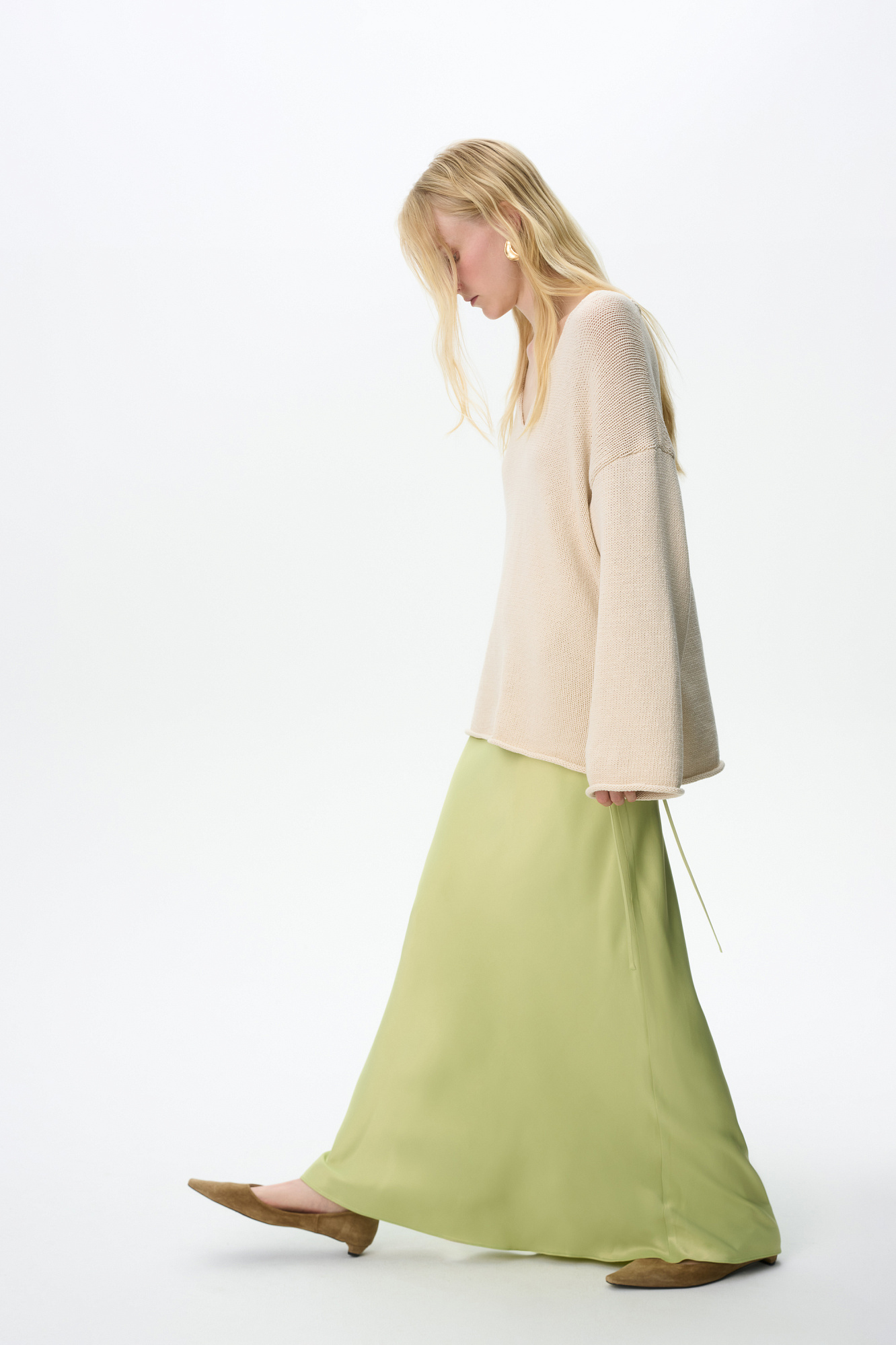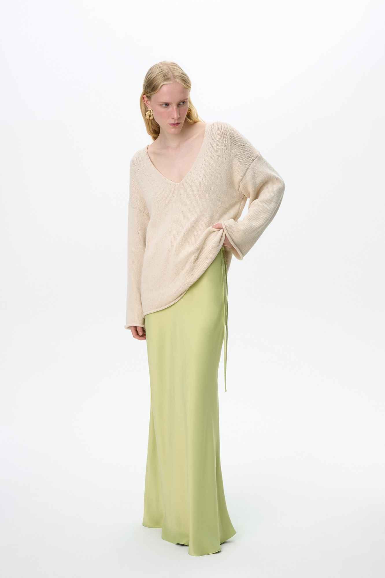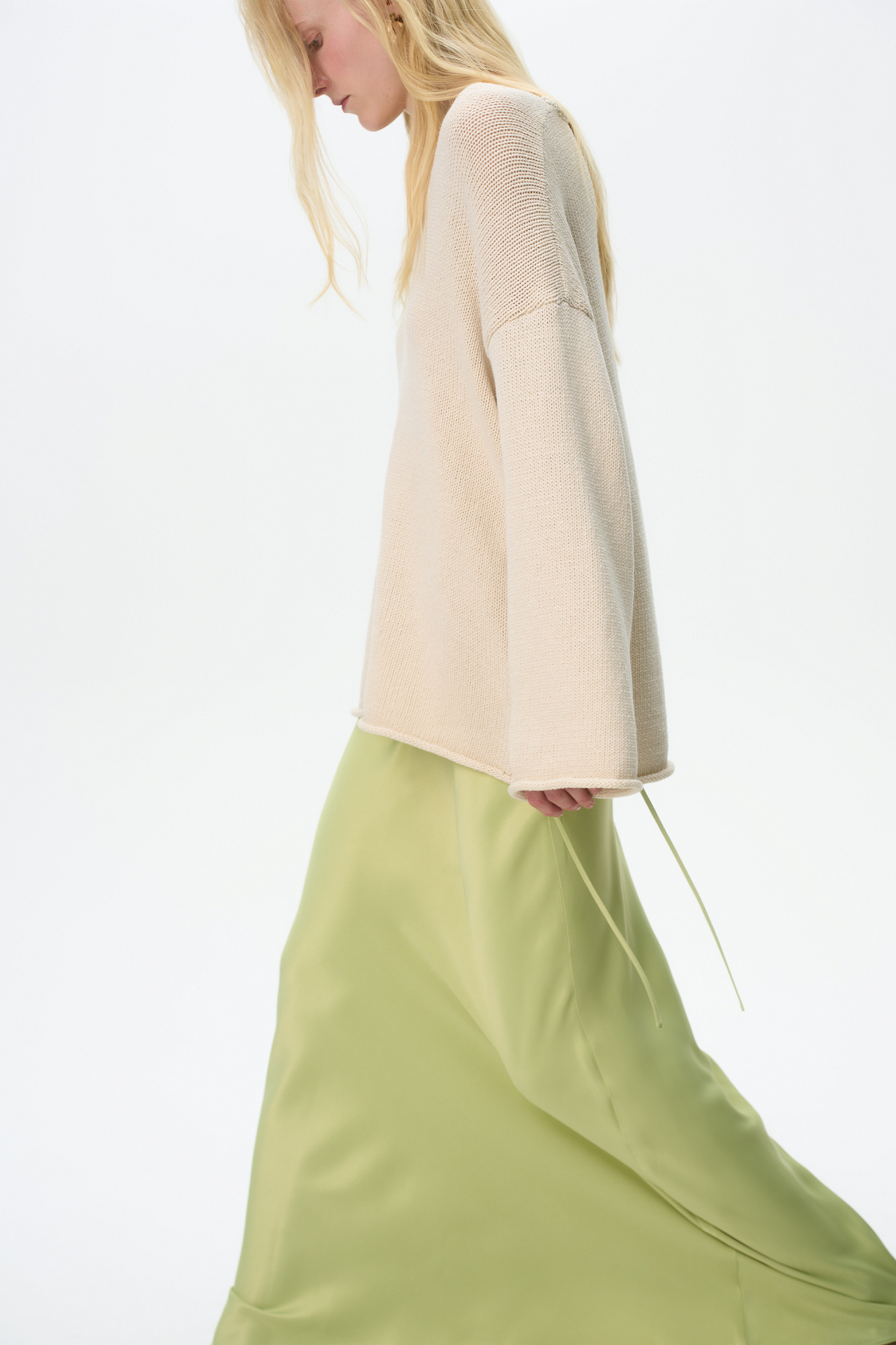 Атласная макси юбка. Модель приталенного силуэта с регулируемой кулиской на поясе.
