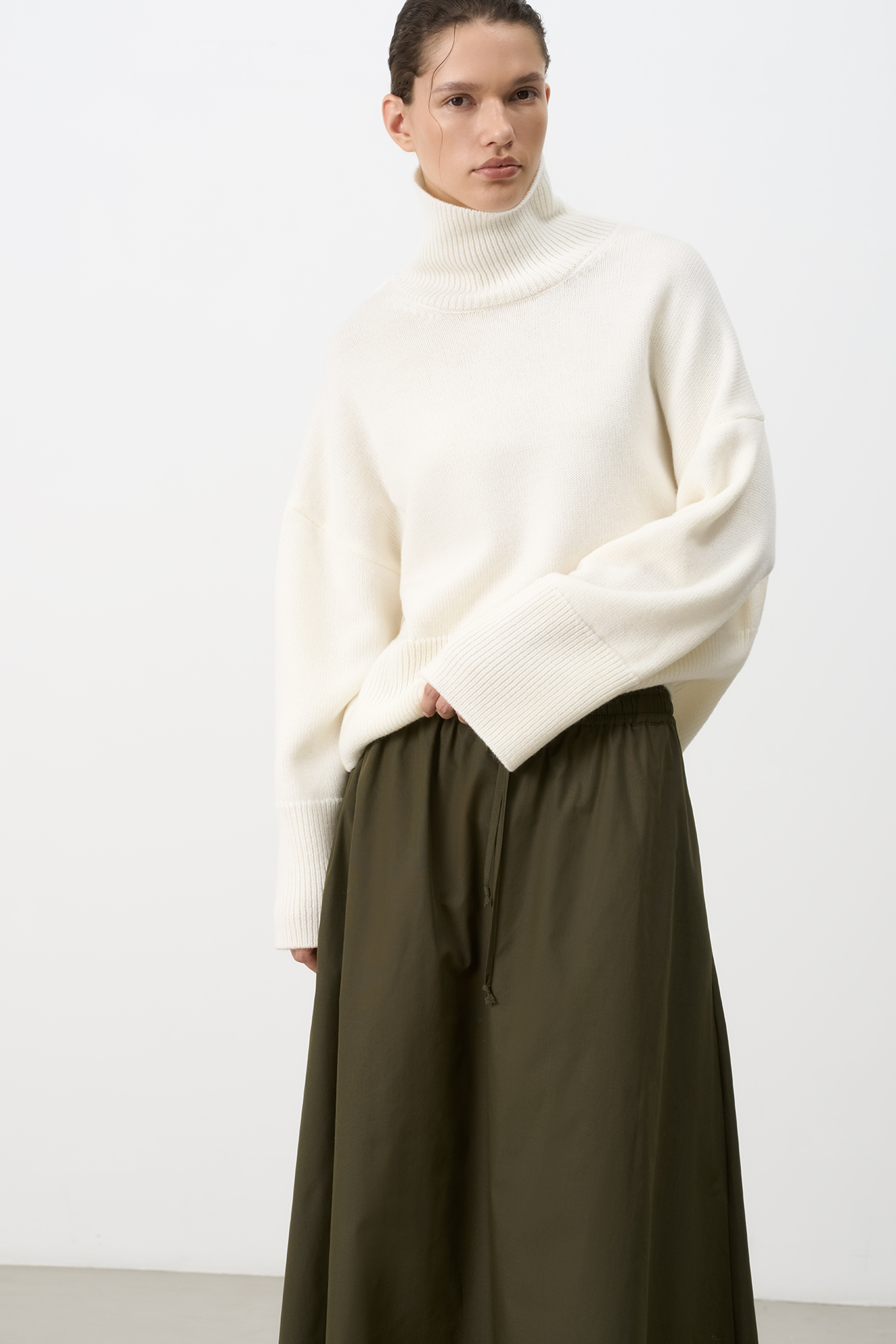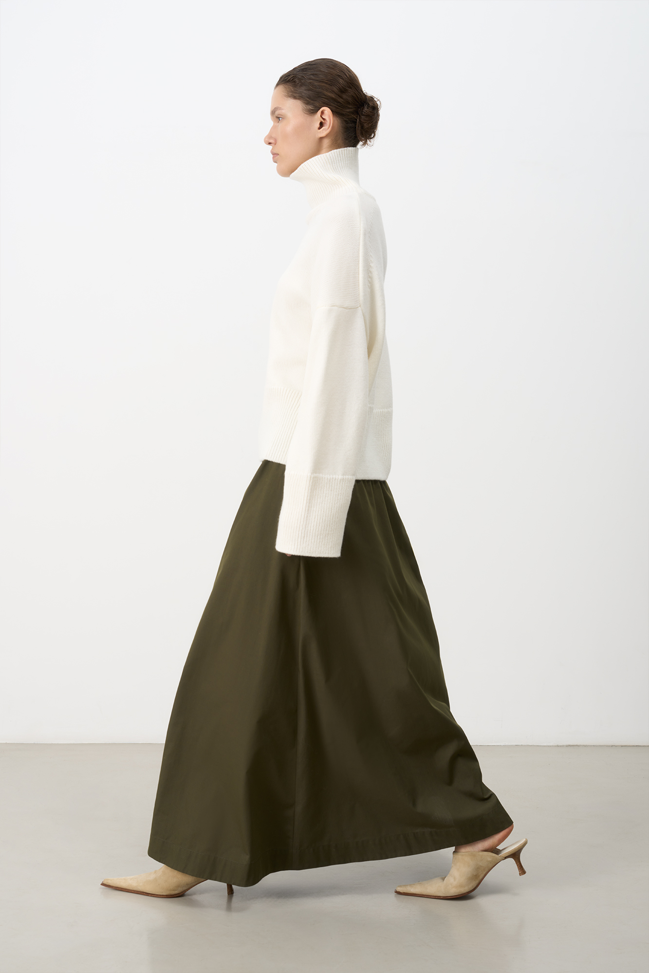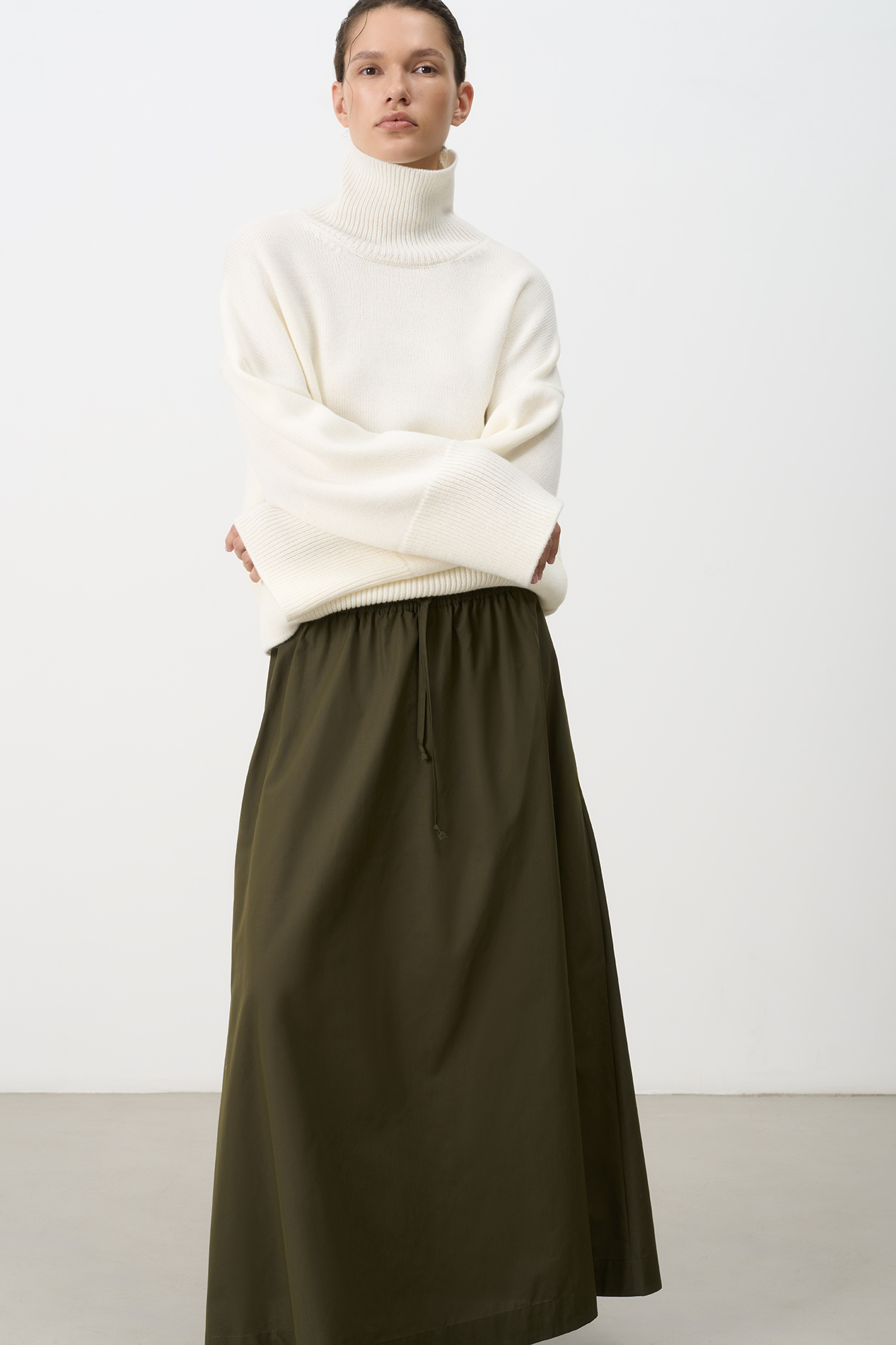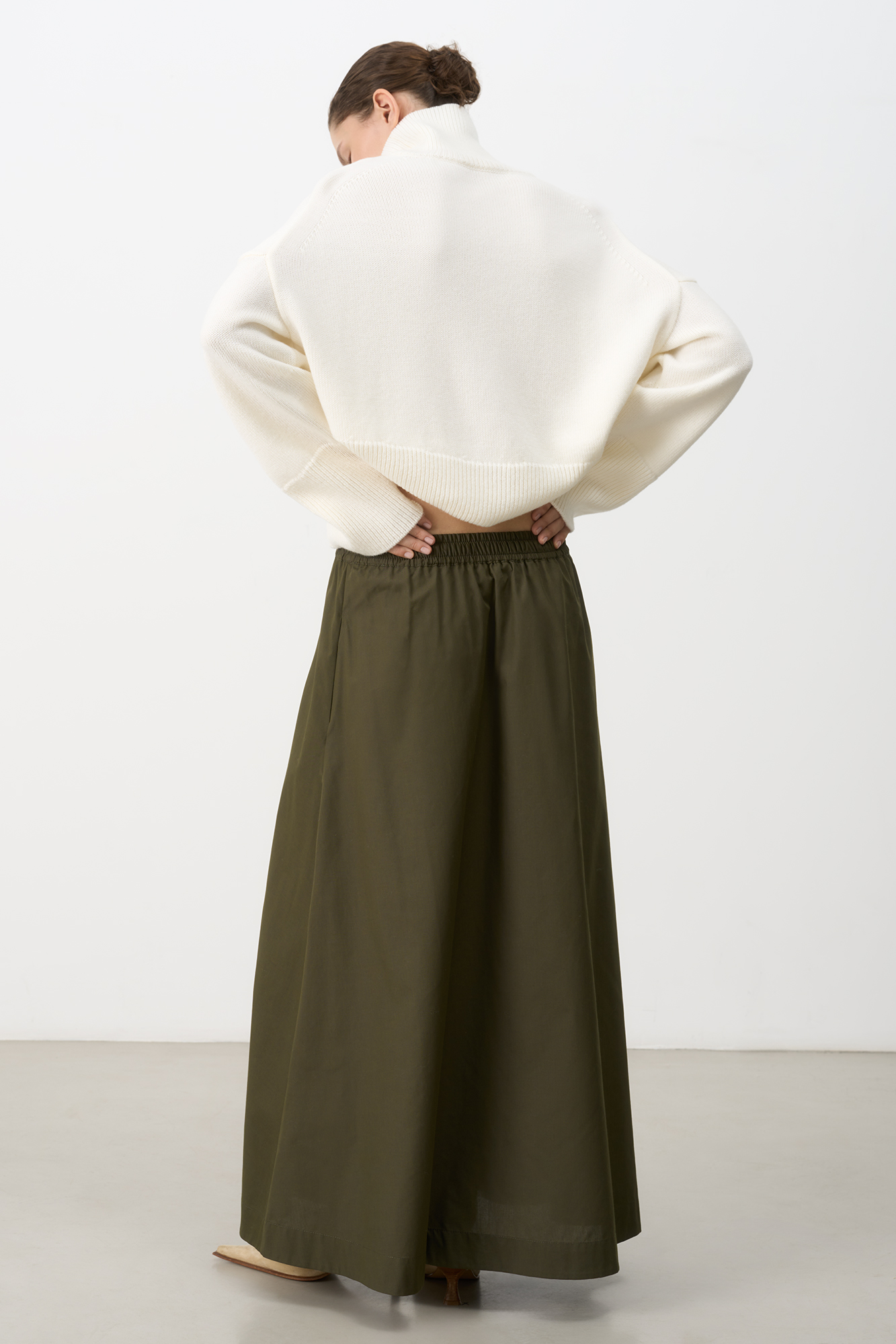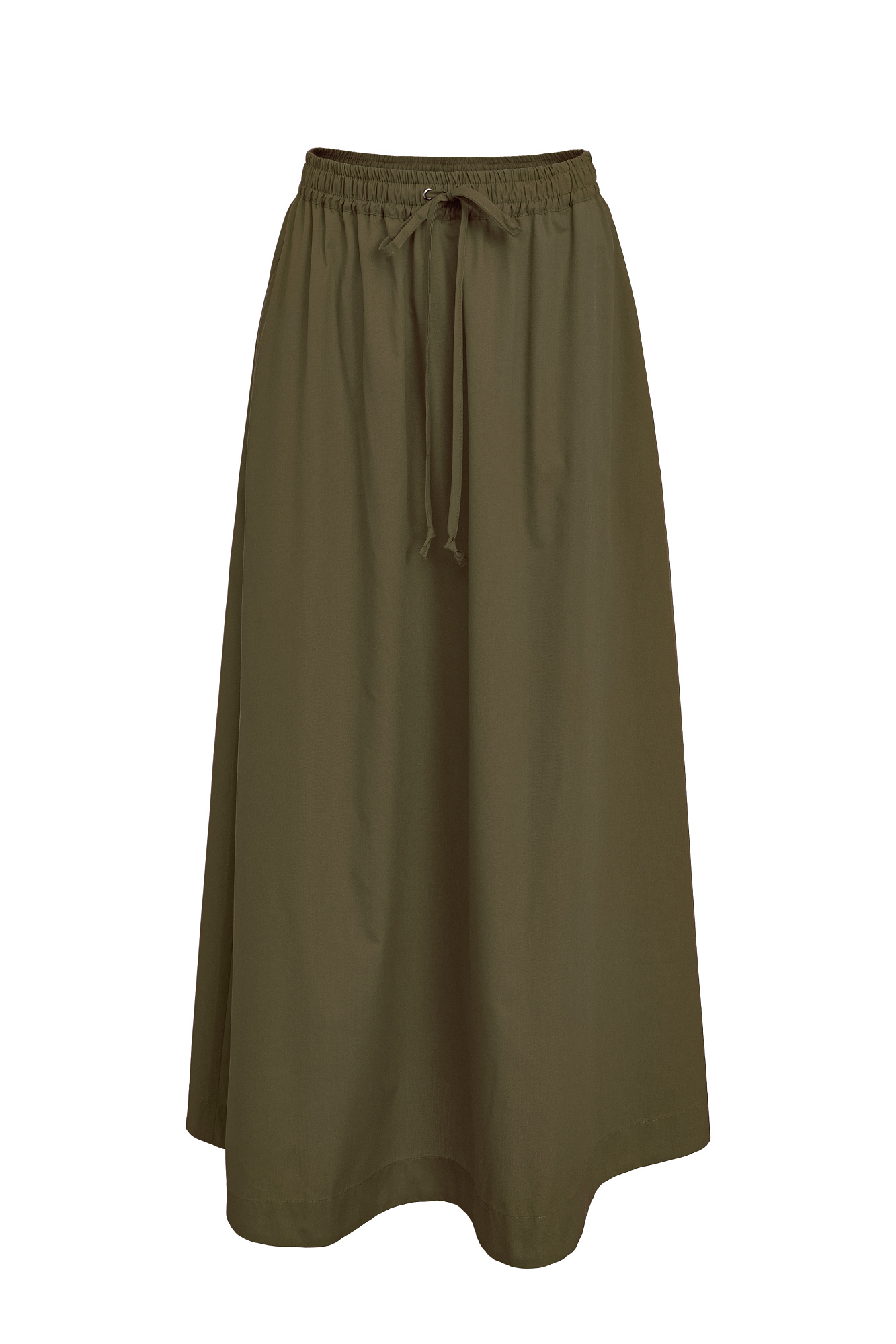 Хлопковая юбка длины макси. Модель прямого кроя, с эластичным поясом на кулиске и карманами.