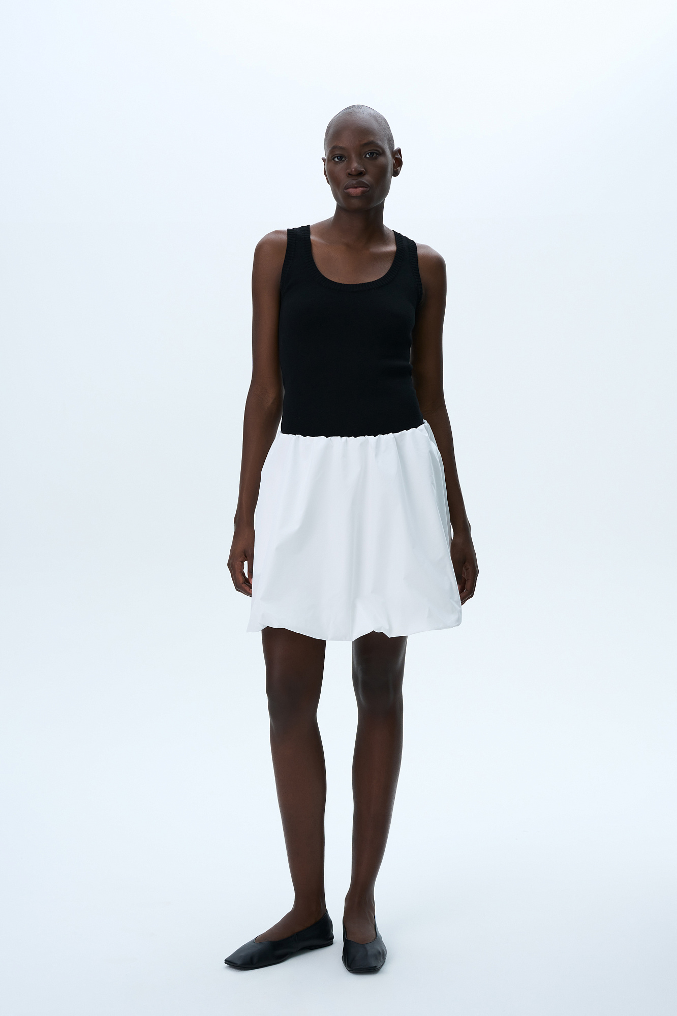 Юбка-баллон длины мини с эластичным поясом на кулиске.