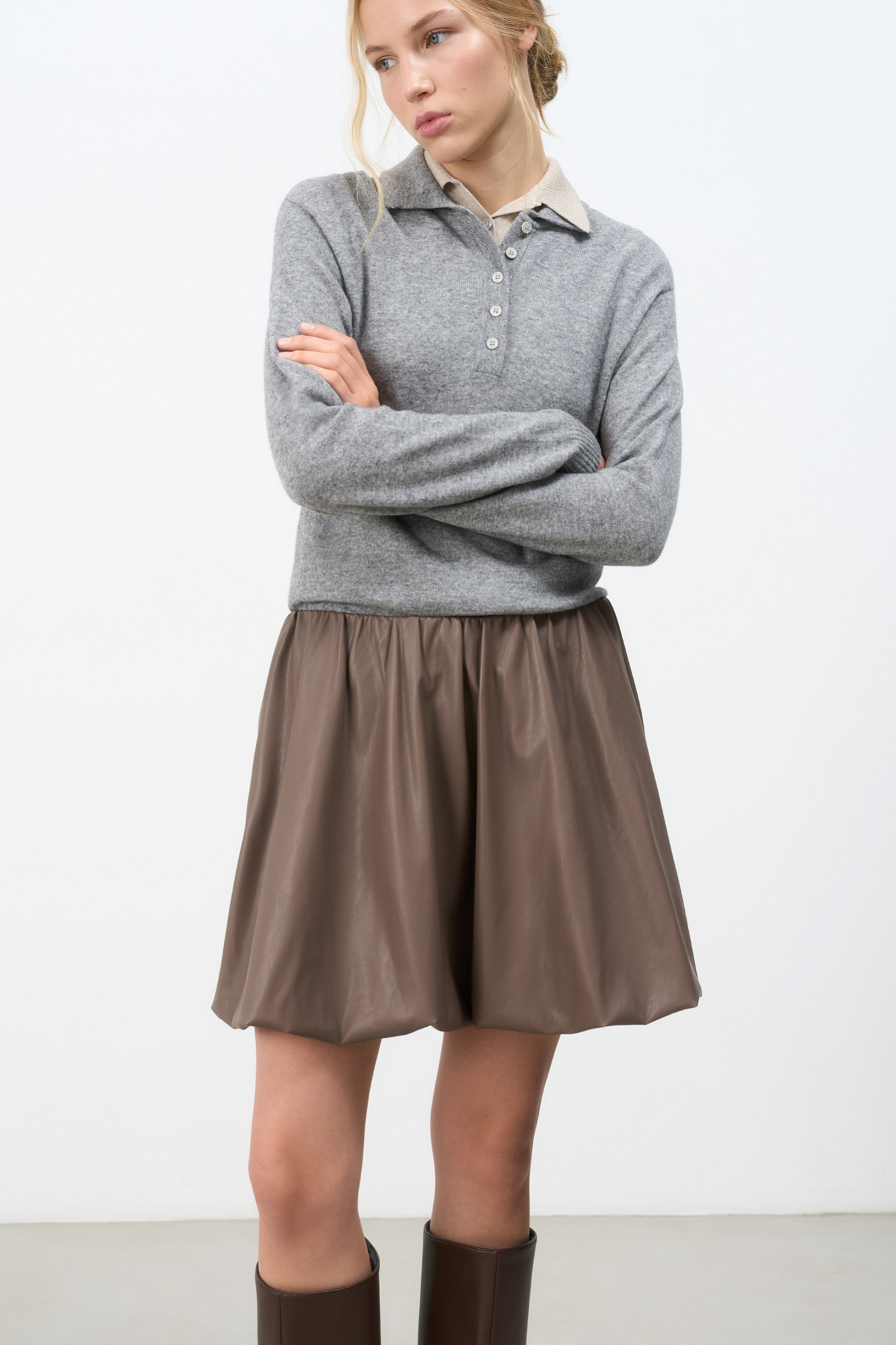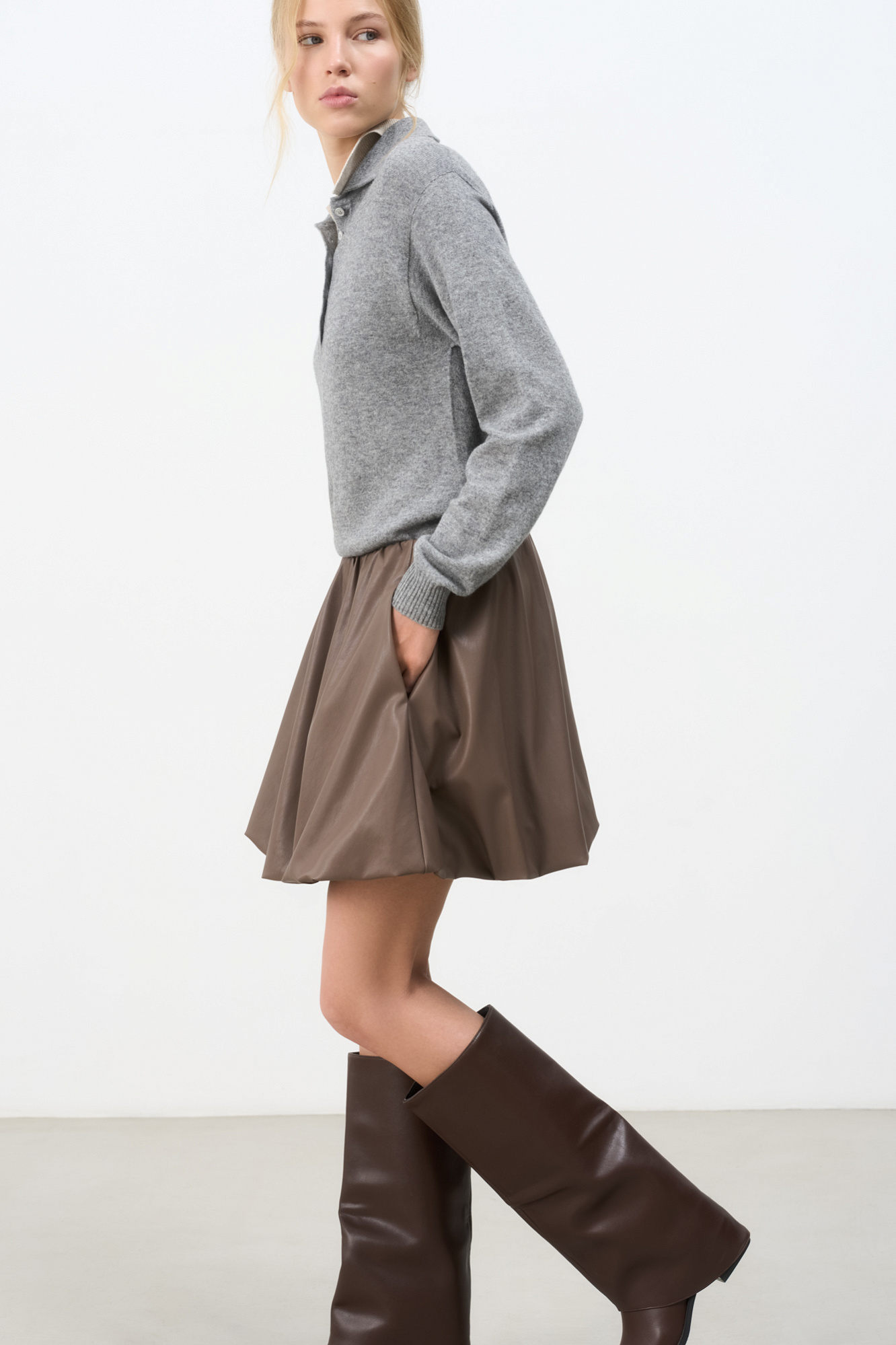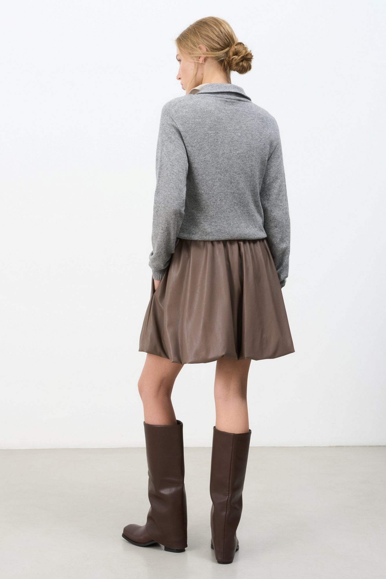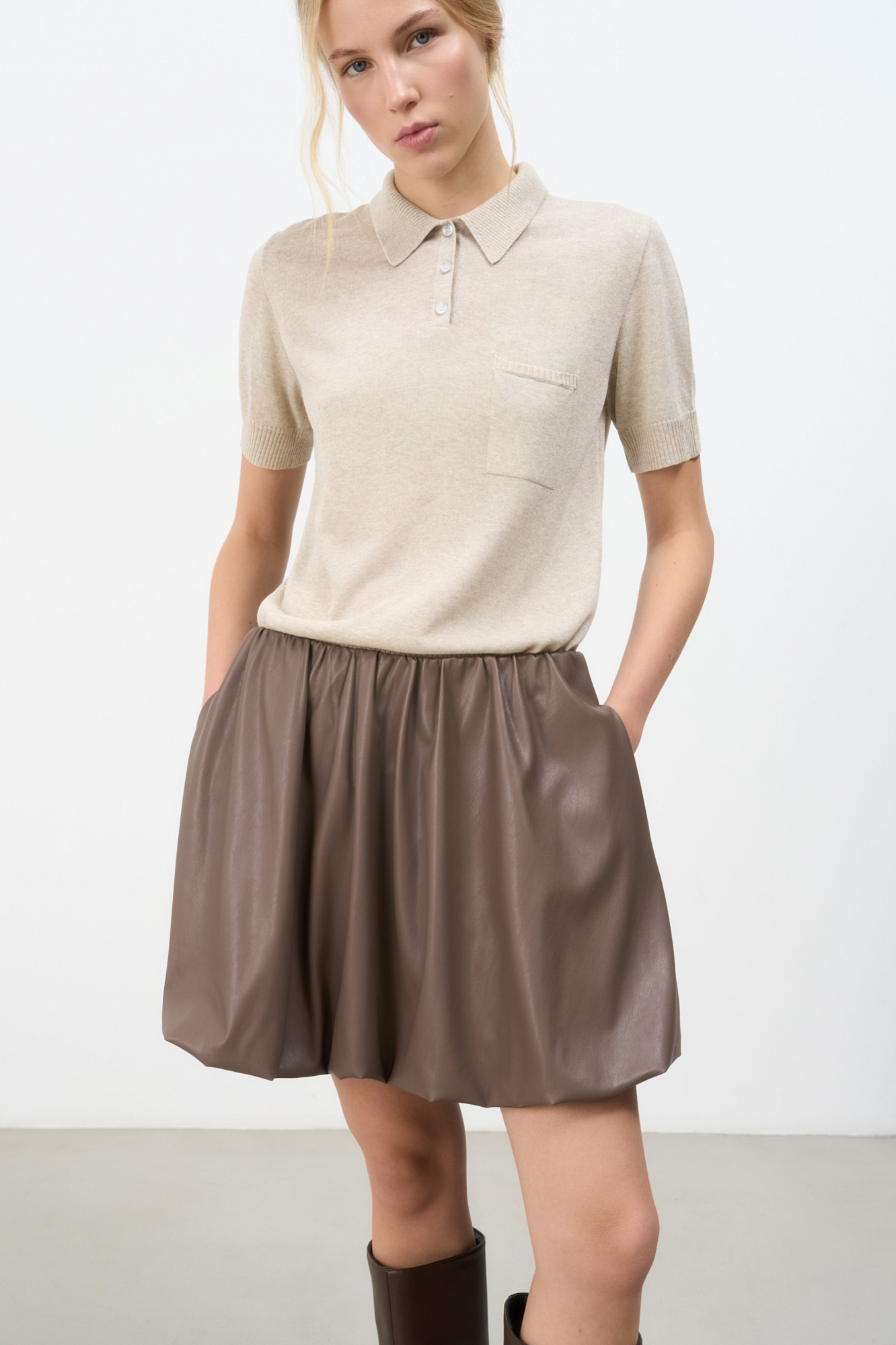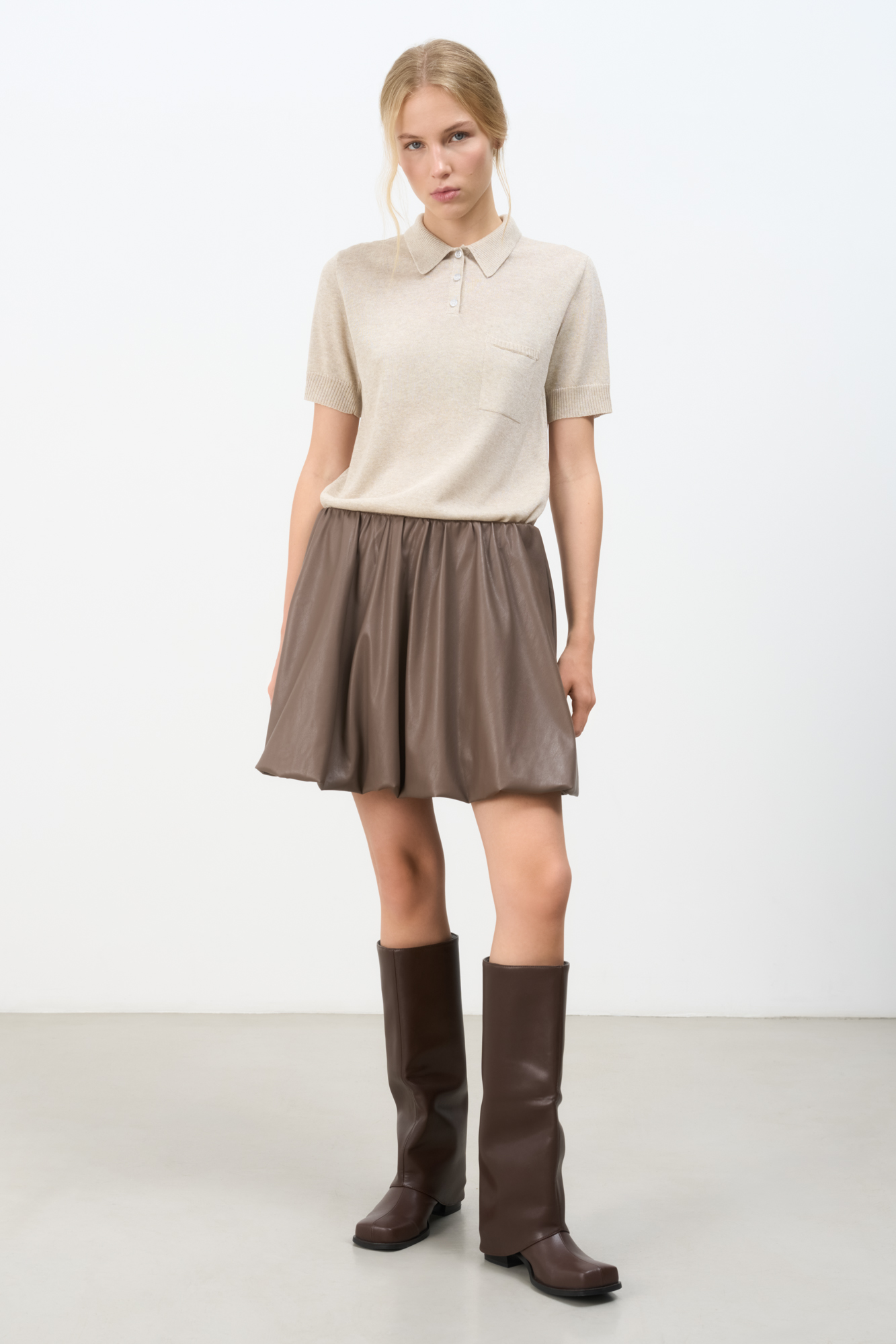 Юбка-баллон из экокожи. Модель длины мини с эластичным поясом на кулиске.