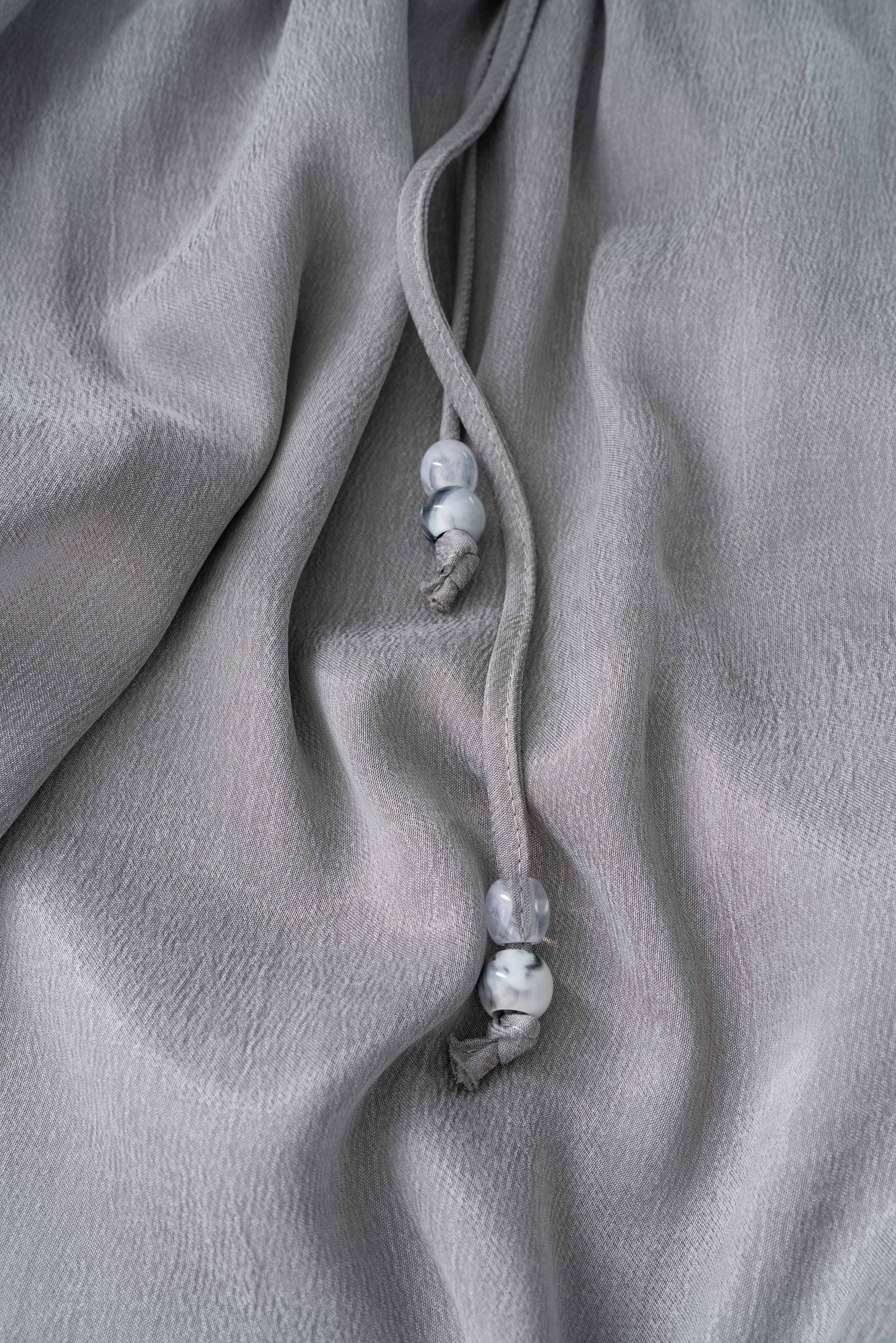 Юбка длины макси из купры. Модель свободного силуэта на кулиске с поясом, декорированным бусинами.