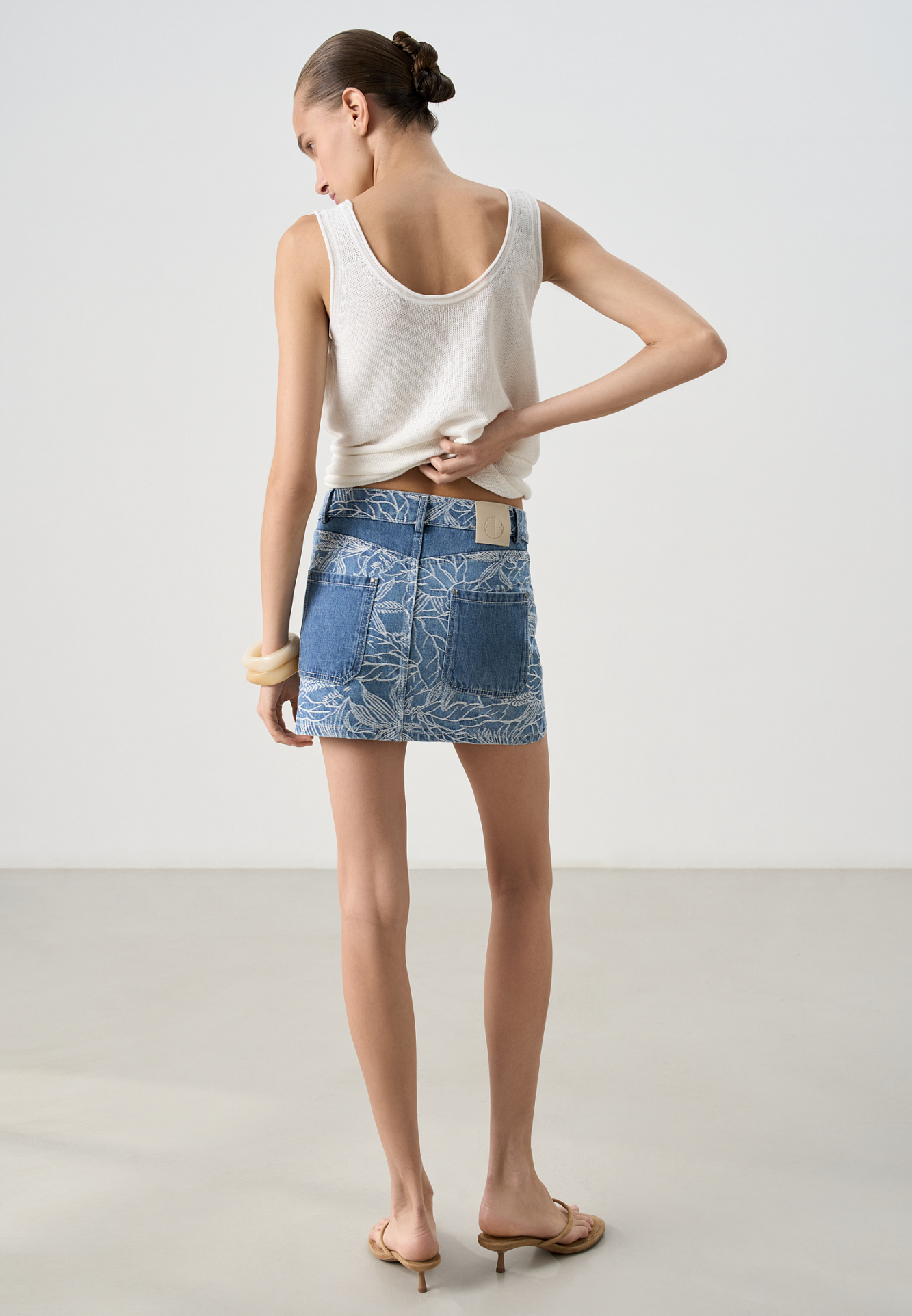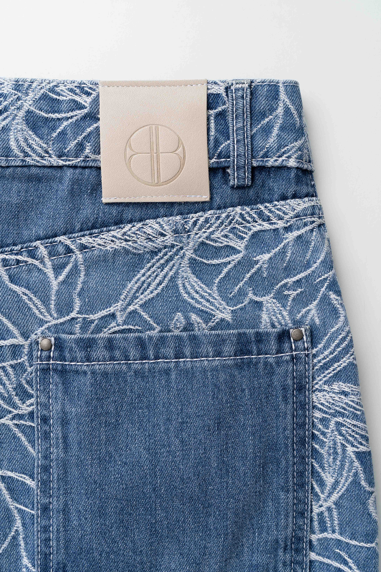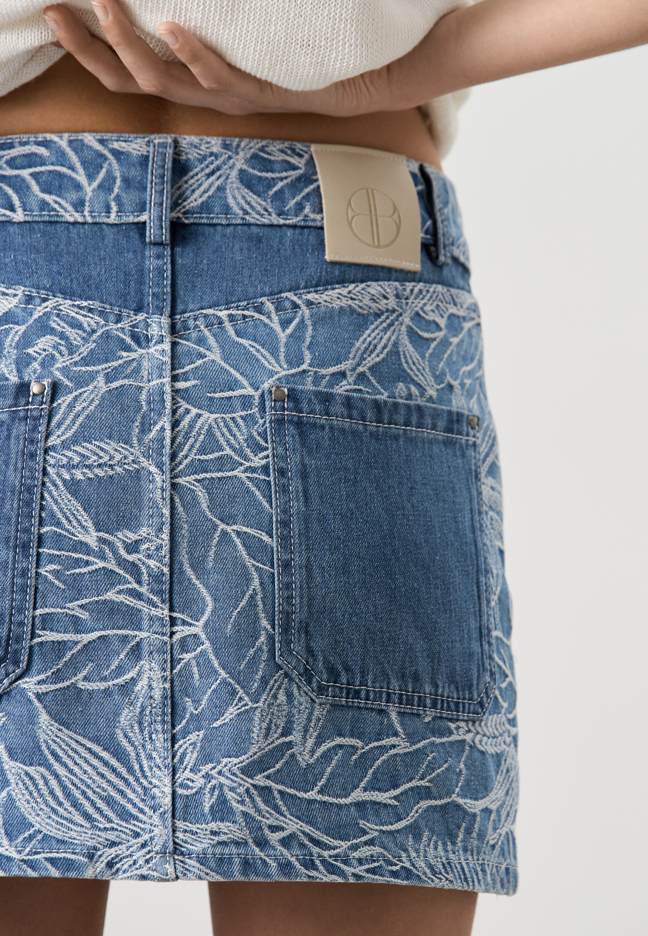 Джинсовая юбка с растительным орнаментом