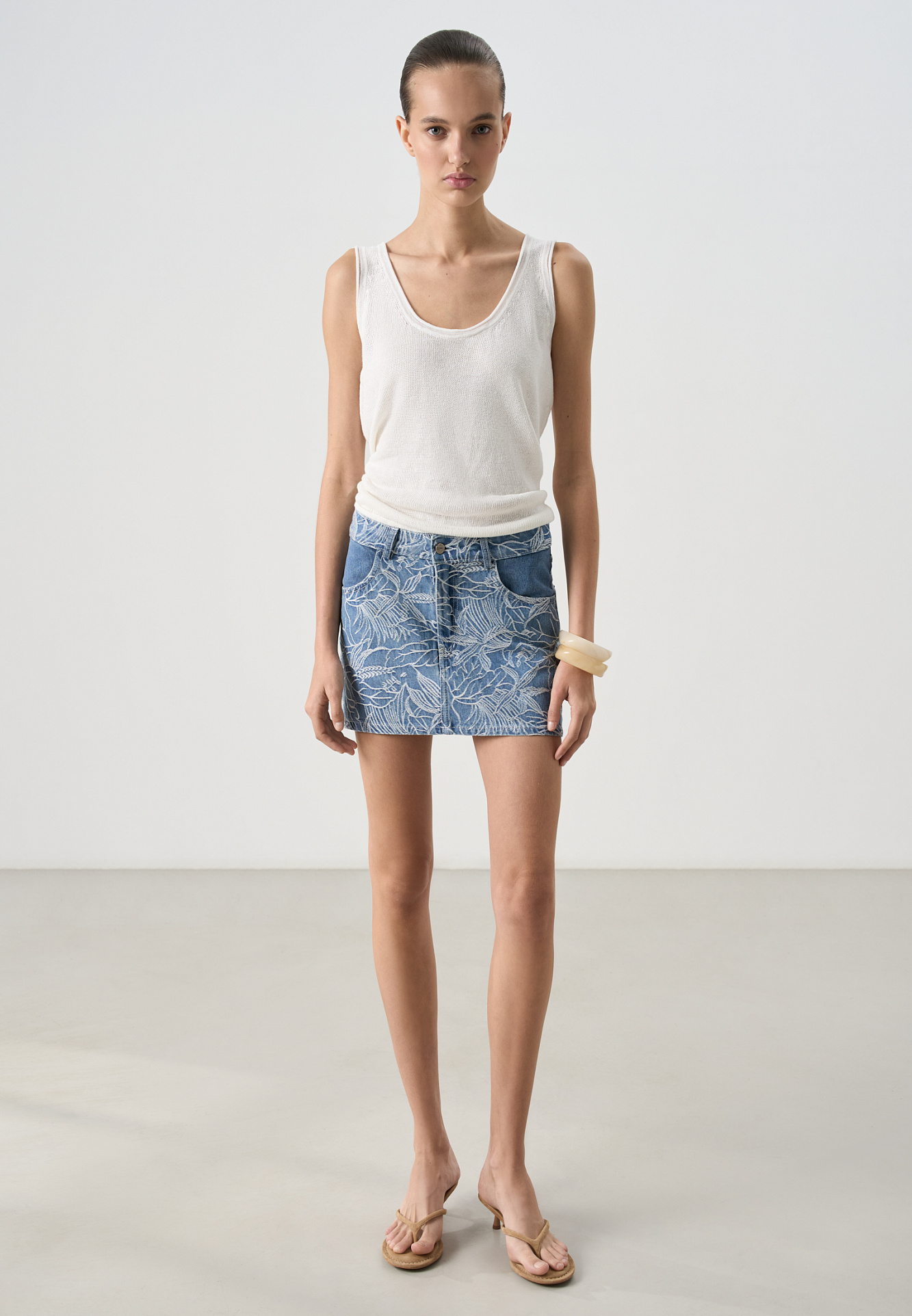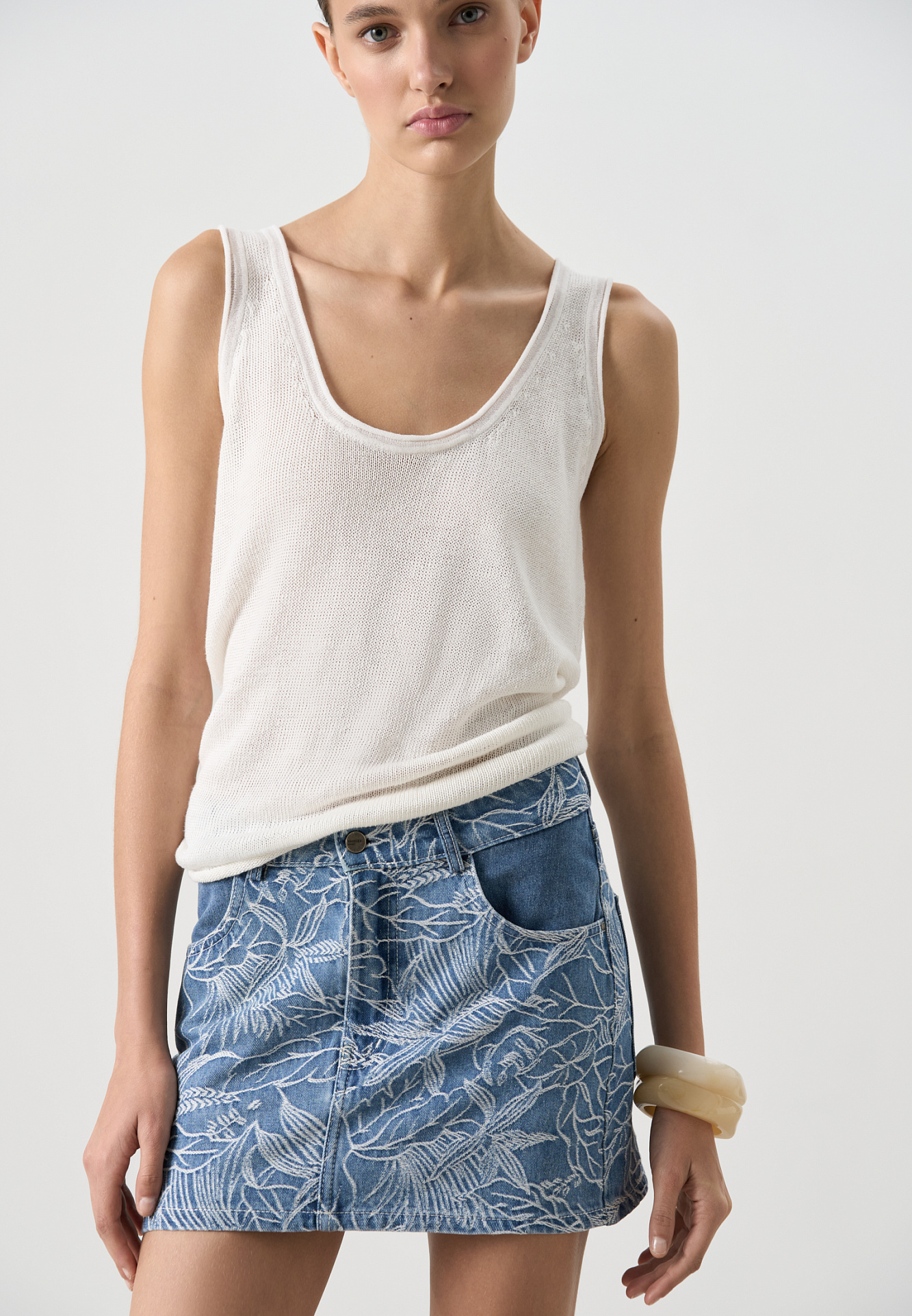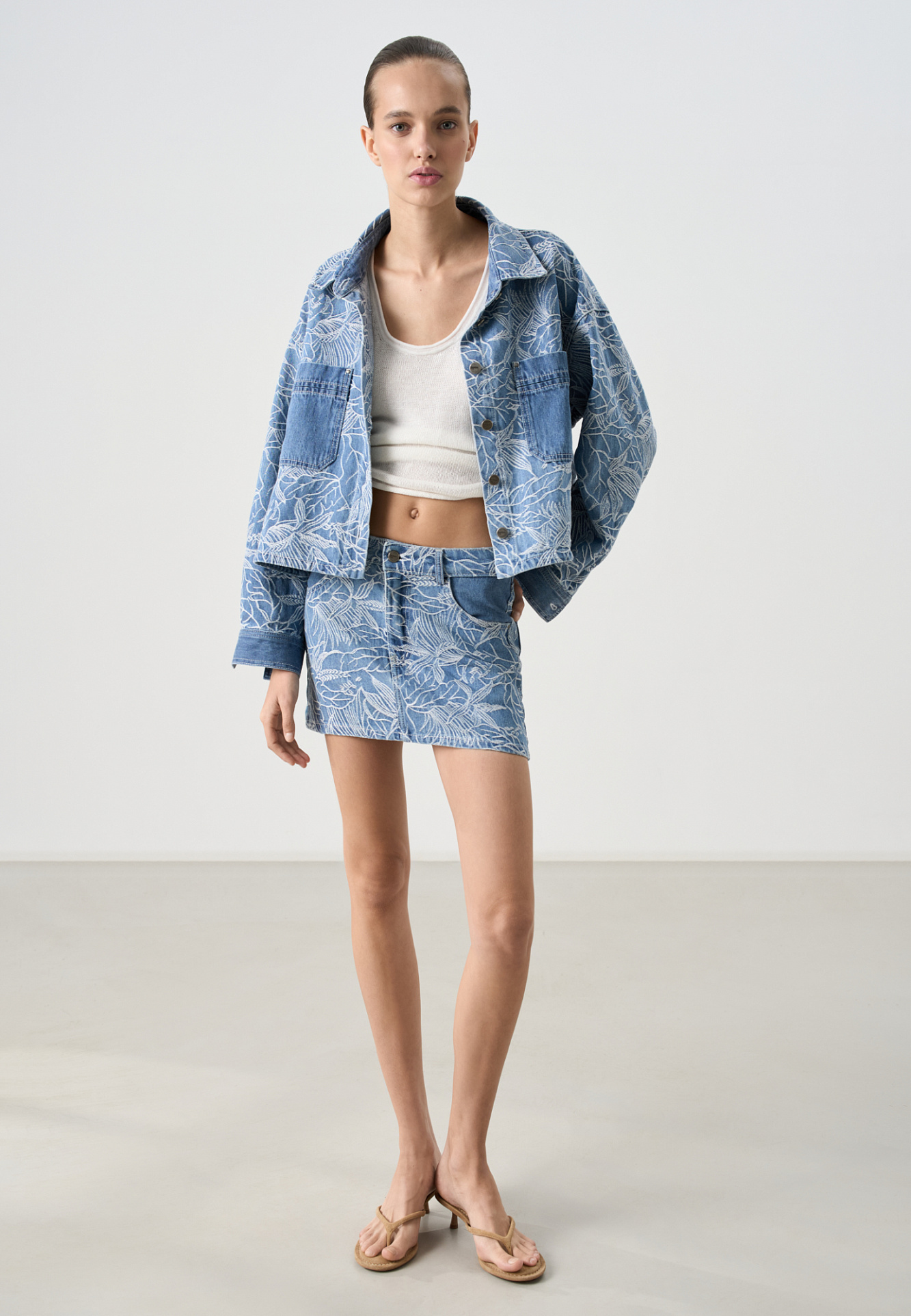 Джинсовая юбка с растительным орнаментом