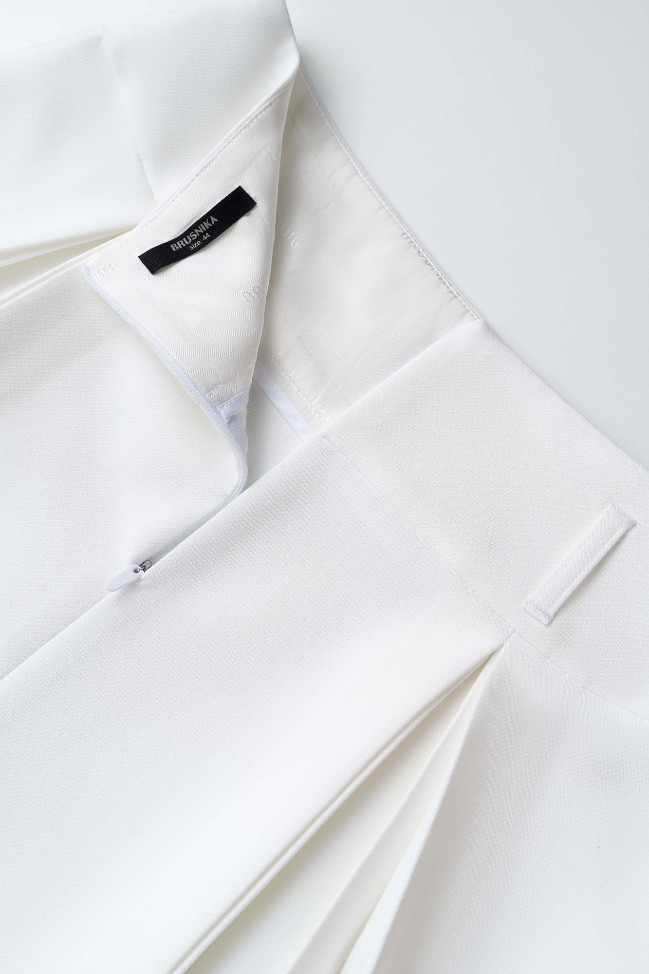 Юбка длины мини из поливискозы. Модель с высоким поясом, дополненым шлевками для ремня. Изделие декорировано закрытыми веерными складками. Застежка на молнию.