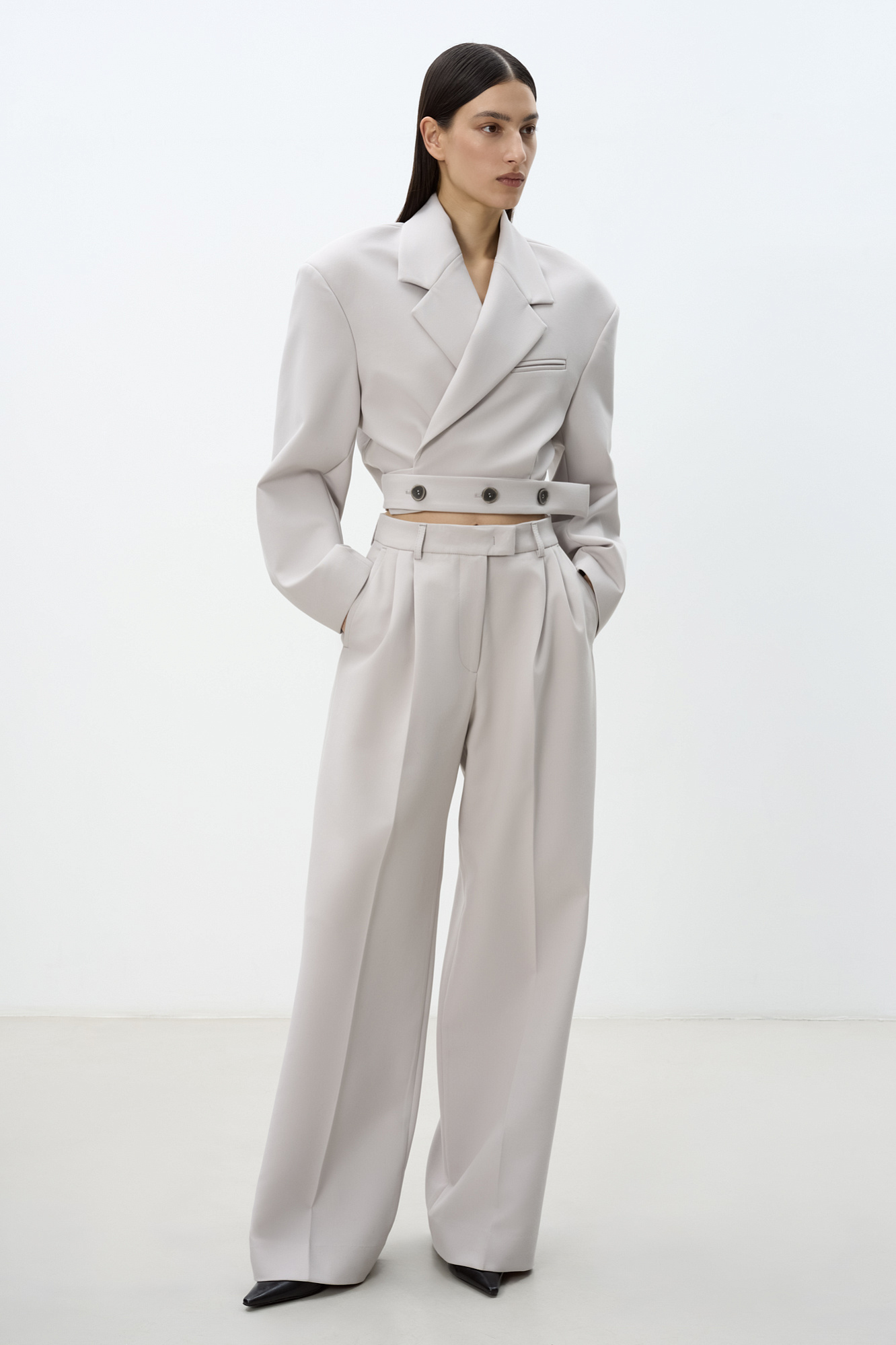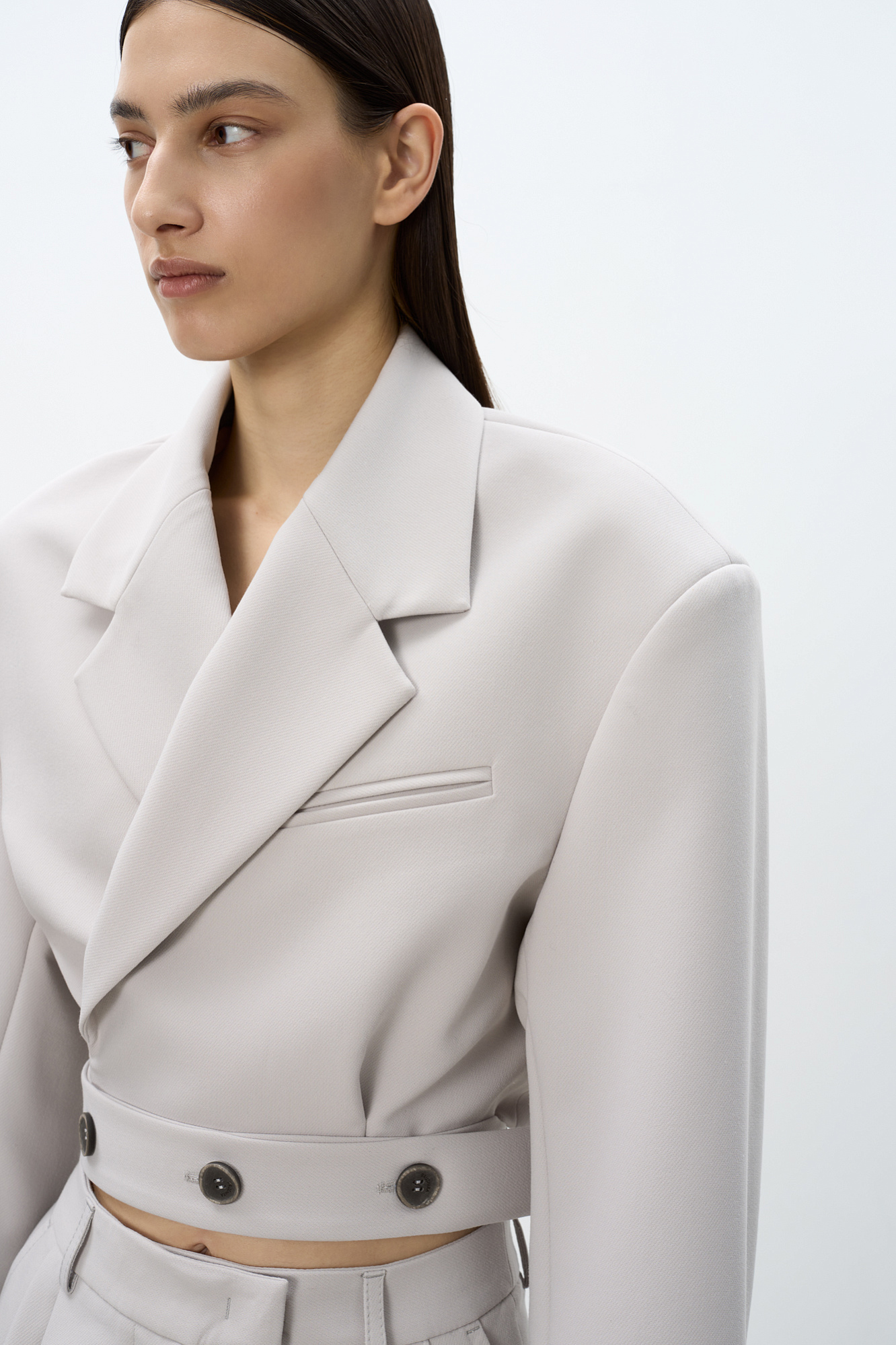 Укороченный жакет на запах с поясом