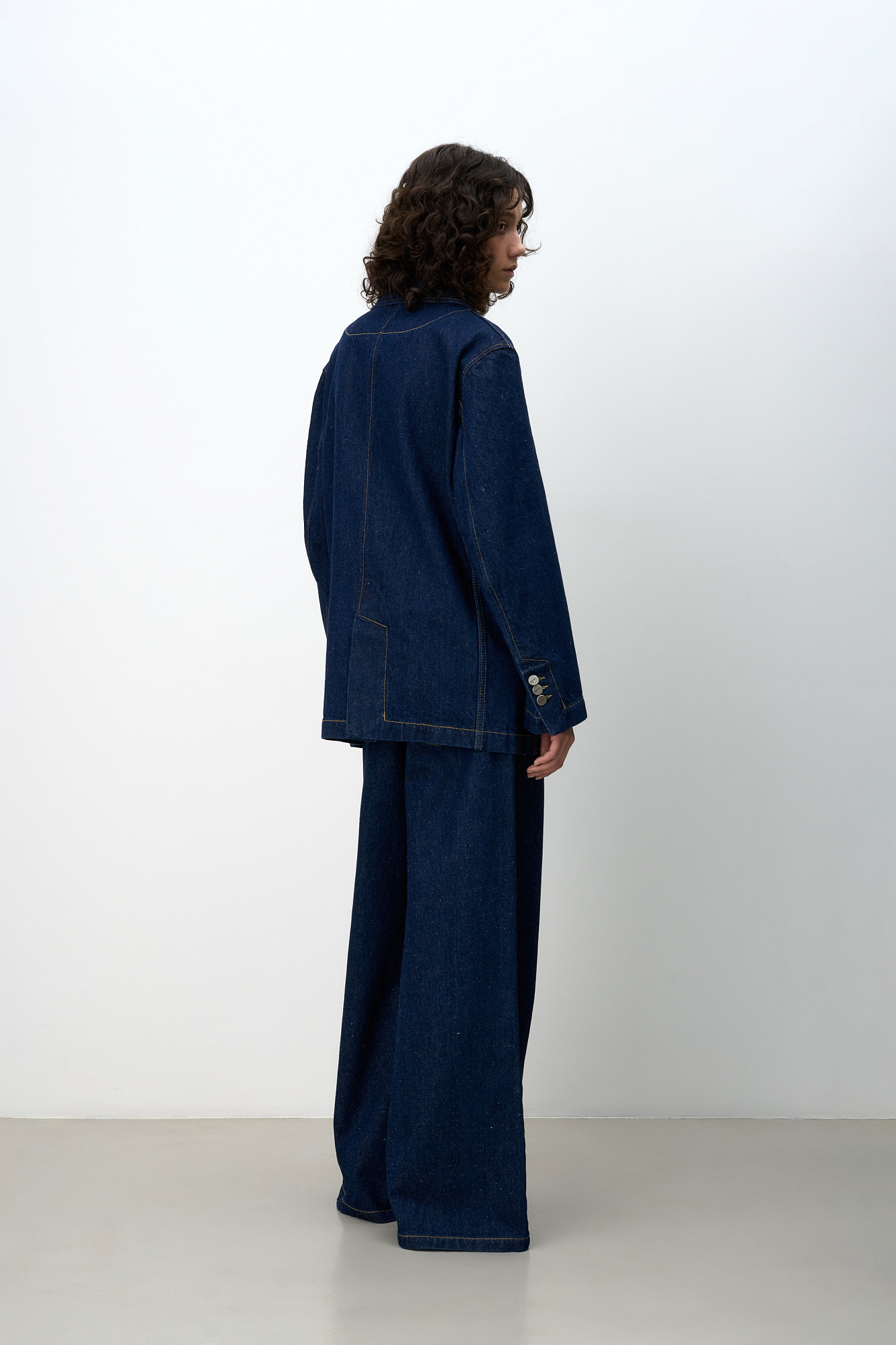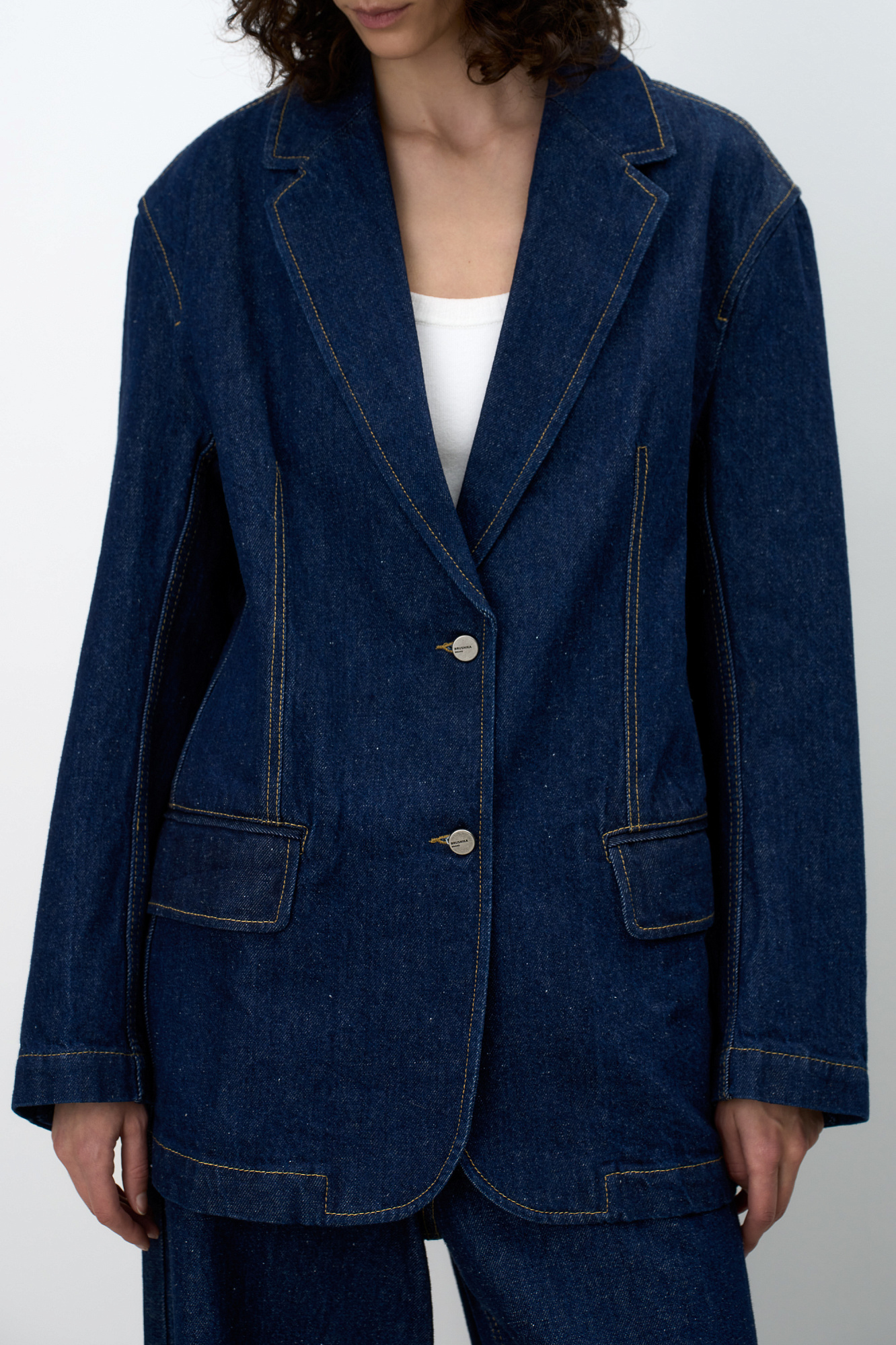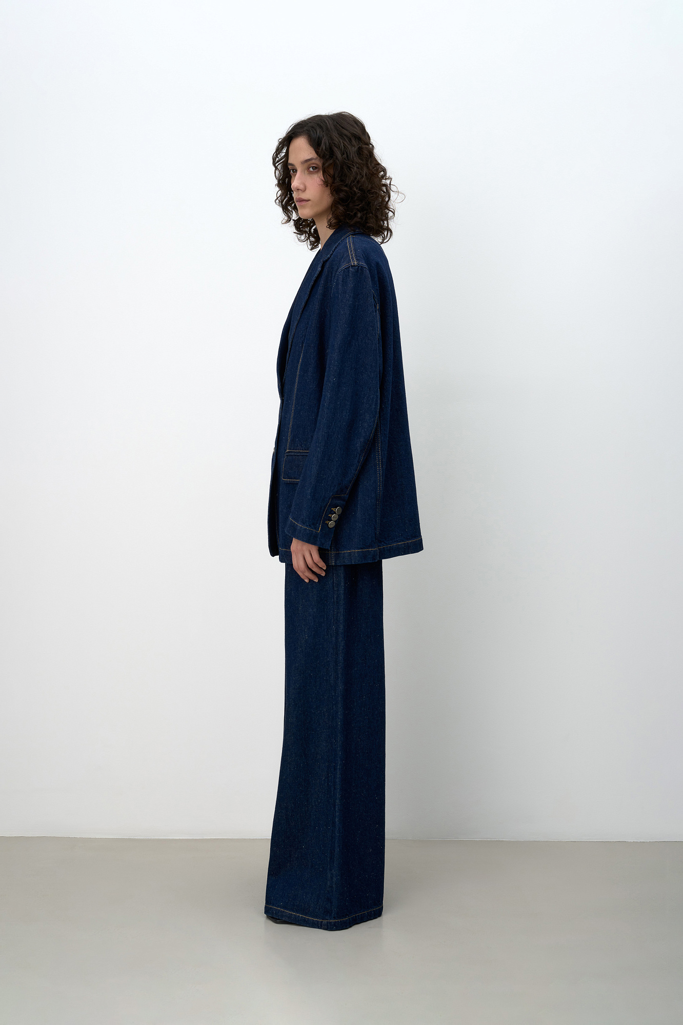 Однобортный жакет, выполненный из смеси хлопковой и конопляной ткани. Модель прямого кроя с лацканами, рукава с пуговицами на манжетах, прорезные карманы с клапаном спереди. Использование конопляной ткани придает изделию особую прочность и износостойкость, а натуральное происхождение подчеркивает экологичность данной модели.