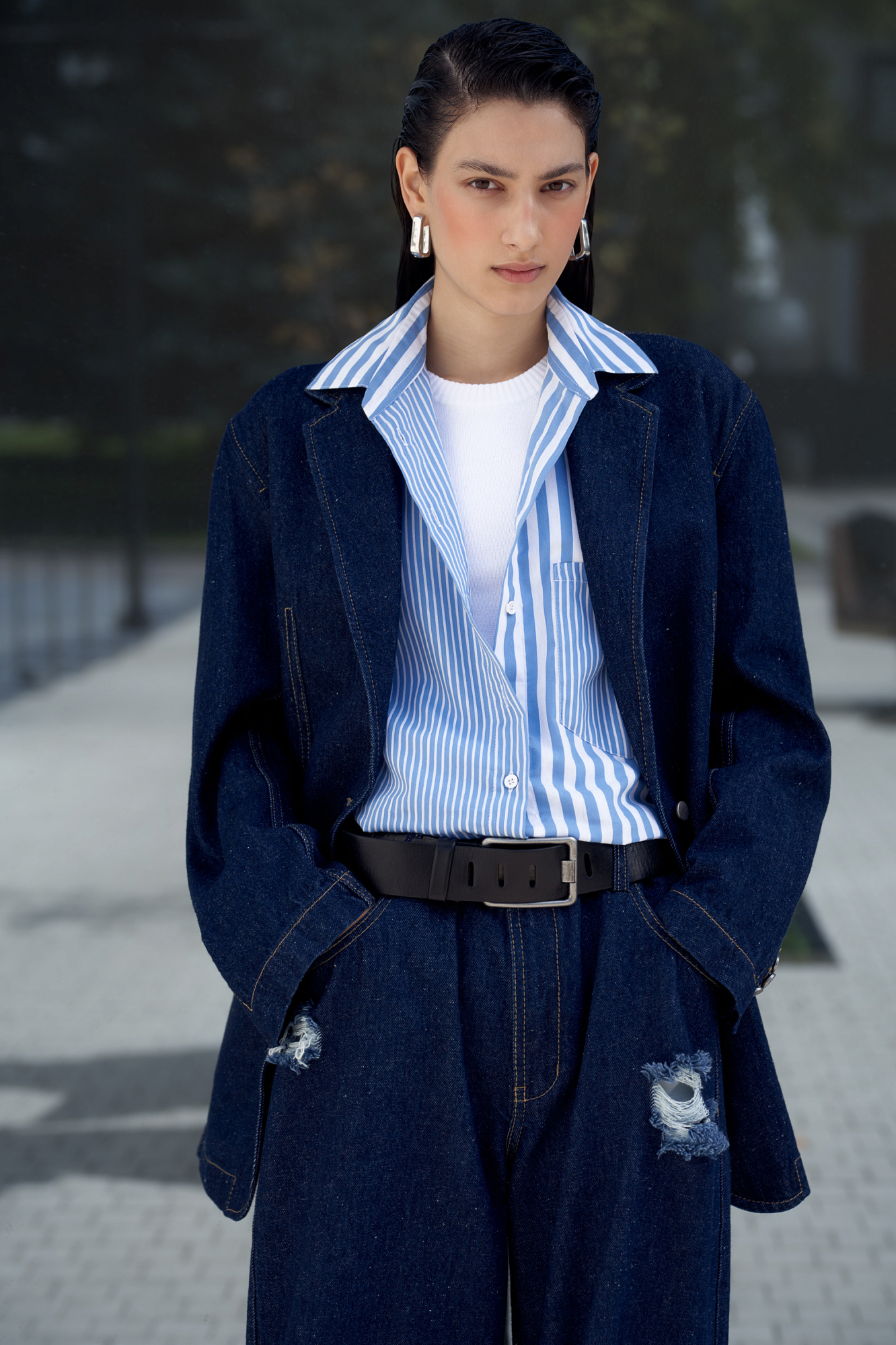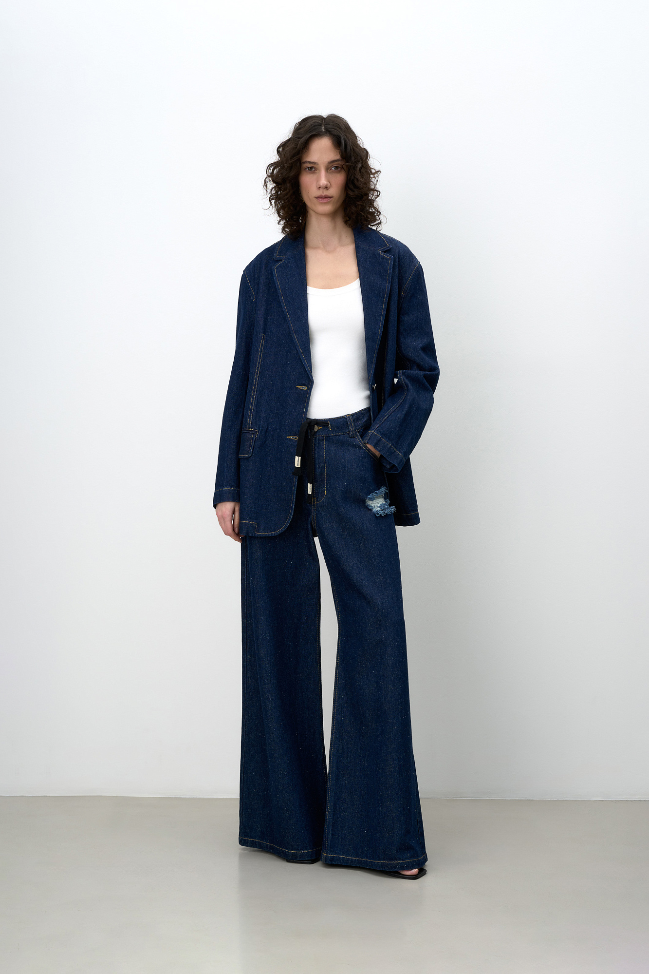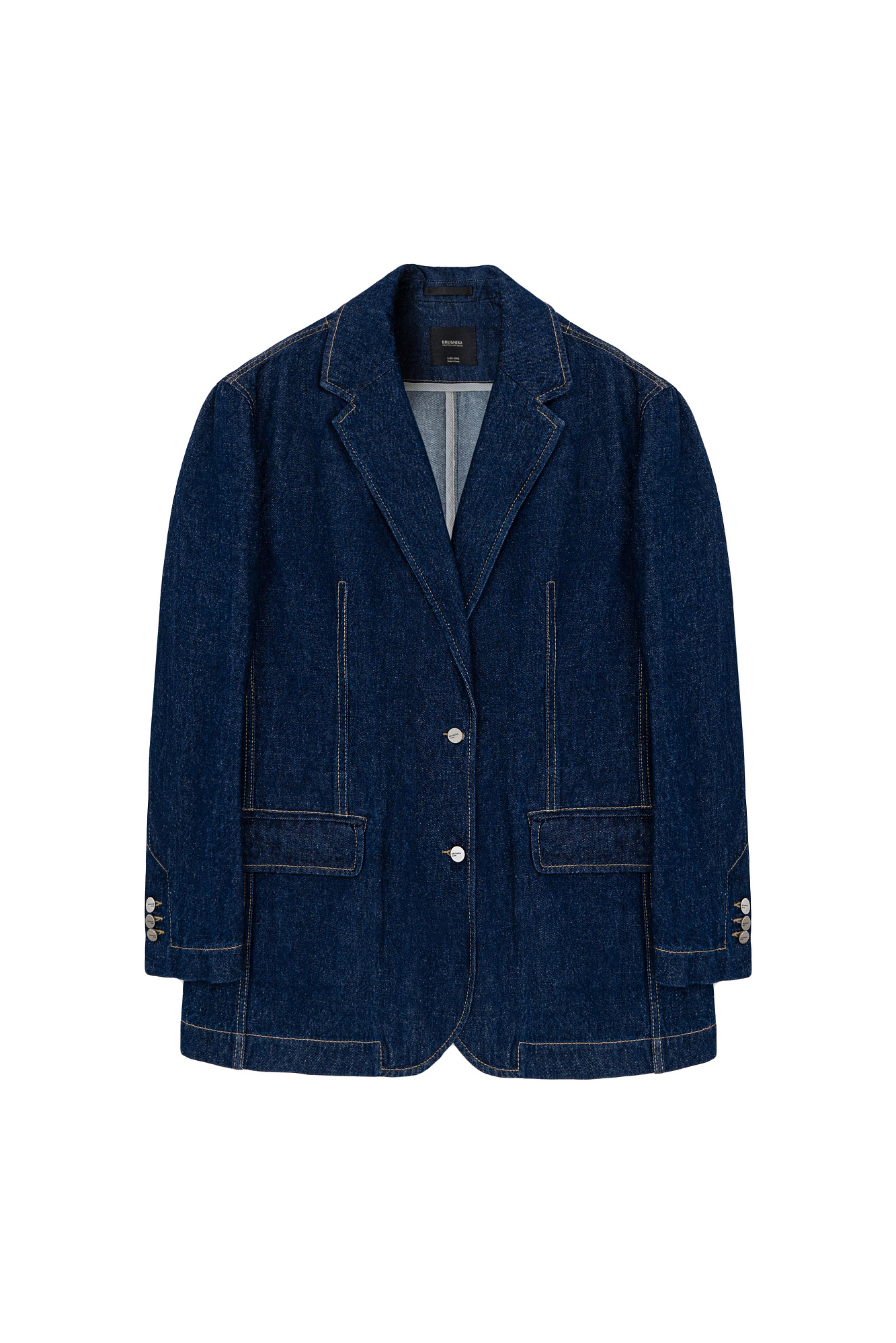 Однобортный жакет, выполненный из смеси хлопковой и конопляной ткани. Модель прямого кроя с лацканами, рукава с пуговицами на манжетах, прорезные карманы с клапаном спереди. Использование конопляной ткани придает изделию особую прочность и износостойкость, а натуральное происхождение подчеркивает экологичность данной модели.