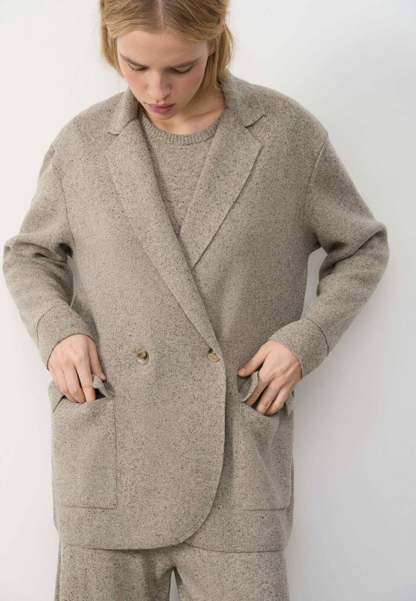 Трикотажный двубортный жакет