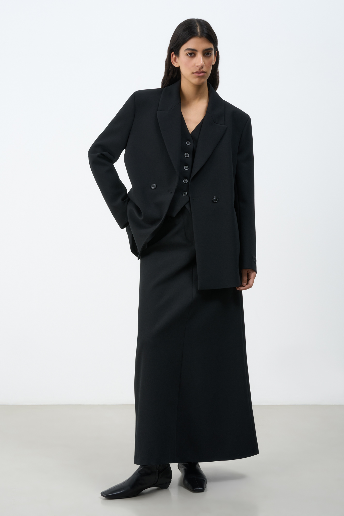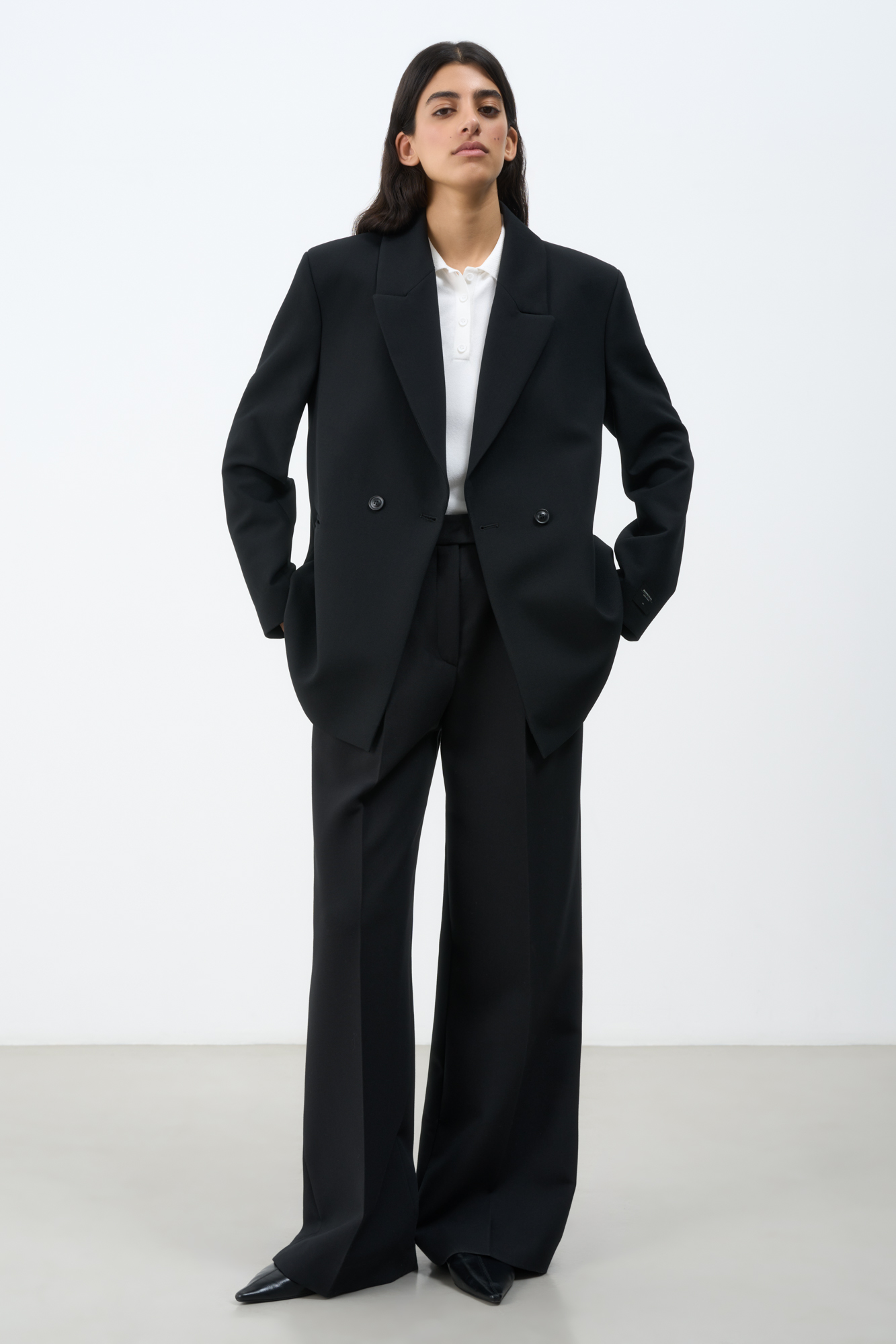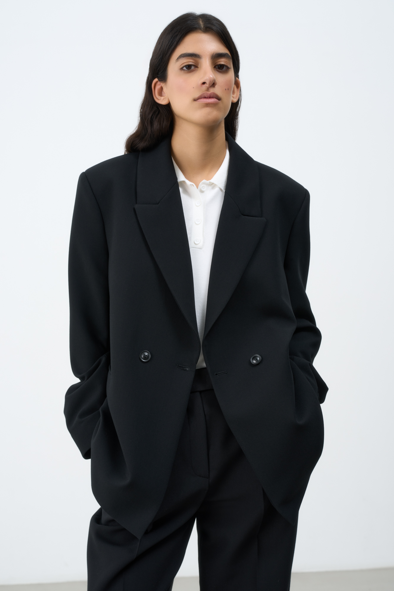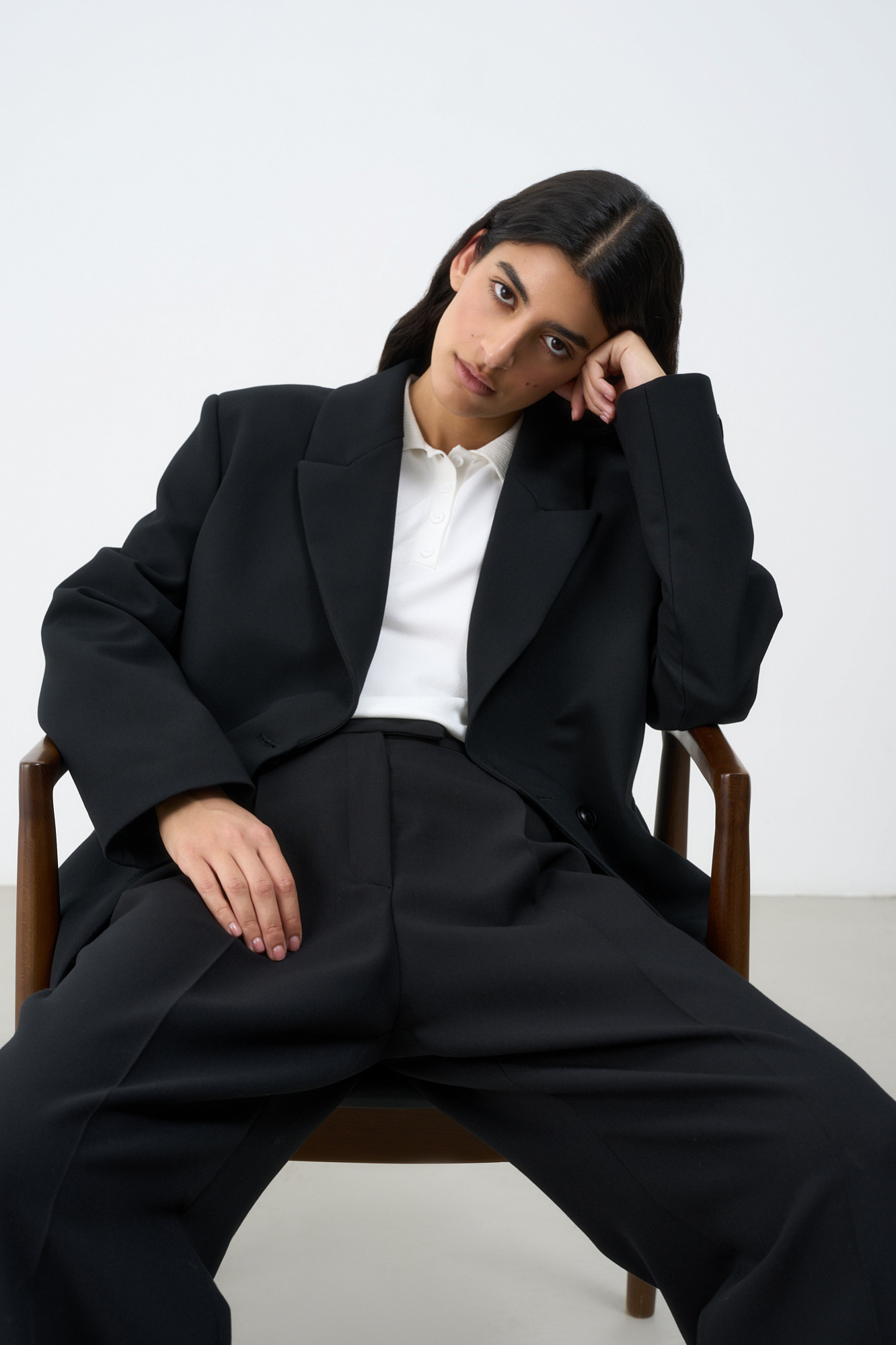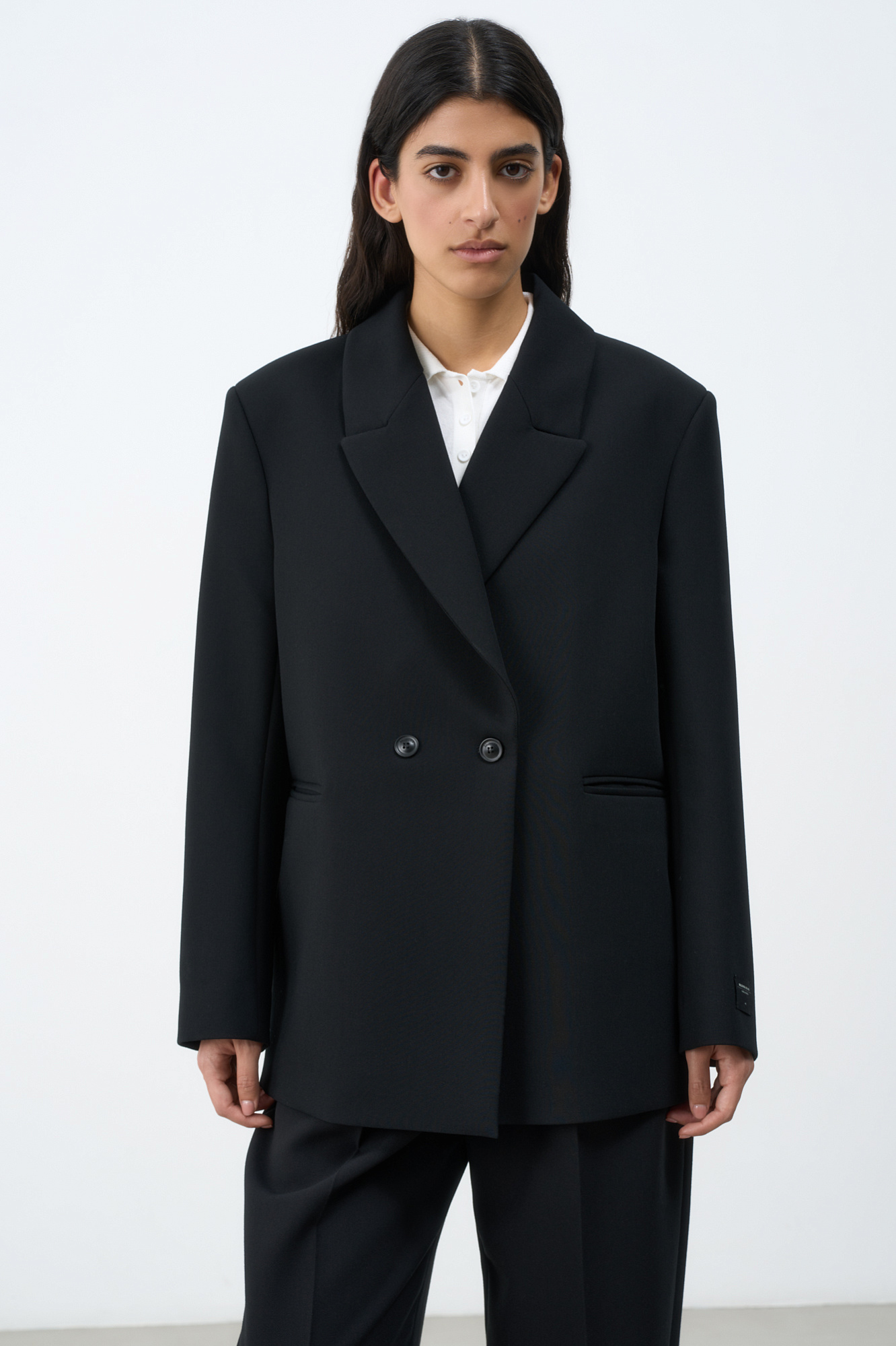 Классический жакет из поливискозы. Накладные карманы, брендированный ярлык на рукаве. Застежка на пуговицы.