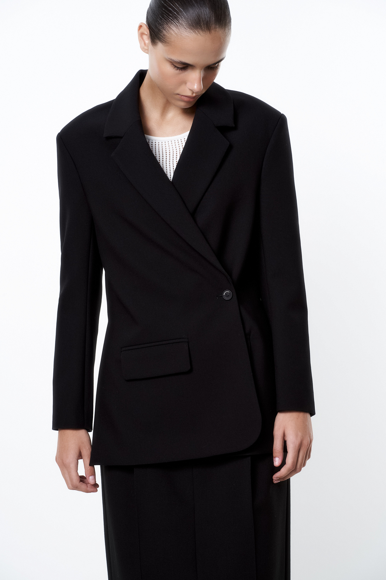 Однобортный жакет с застежкой на запах