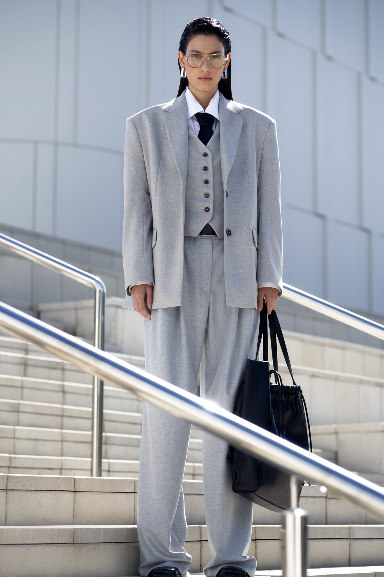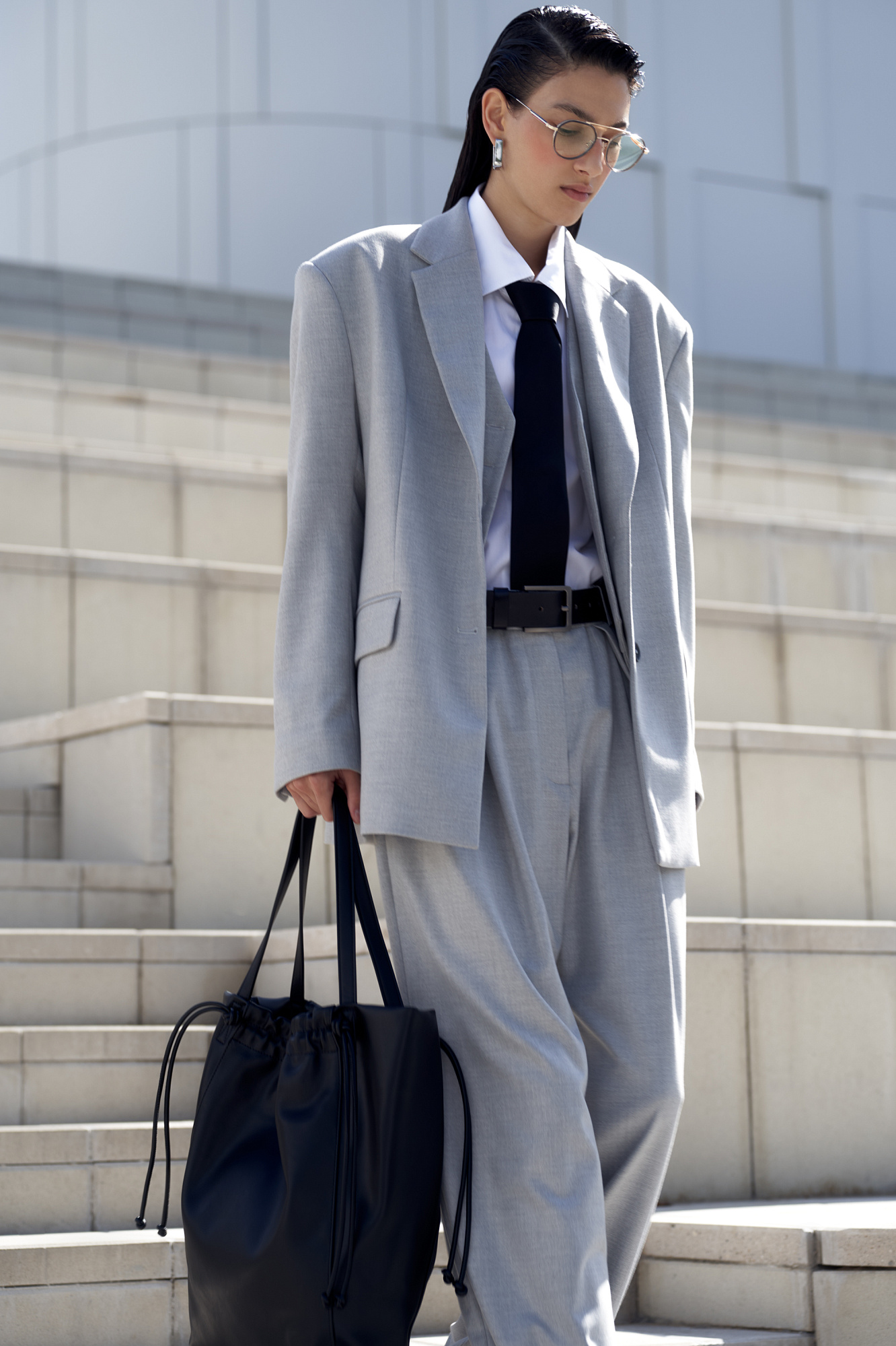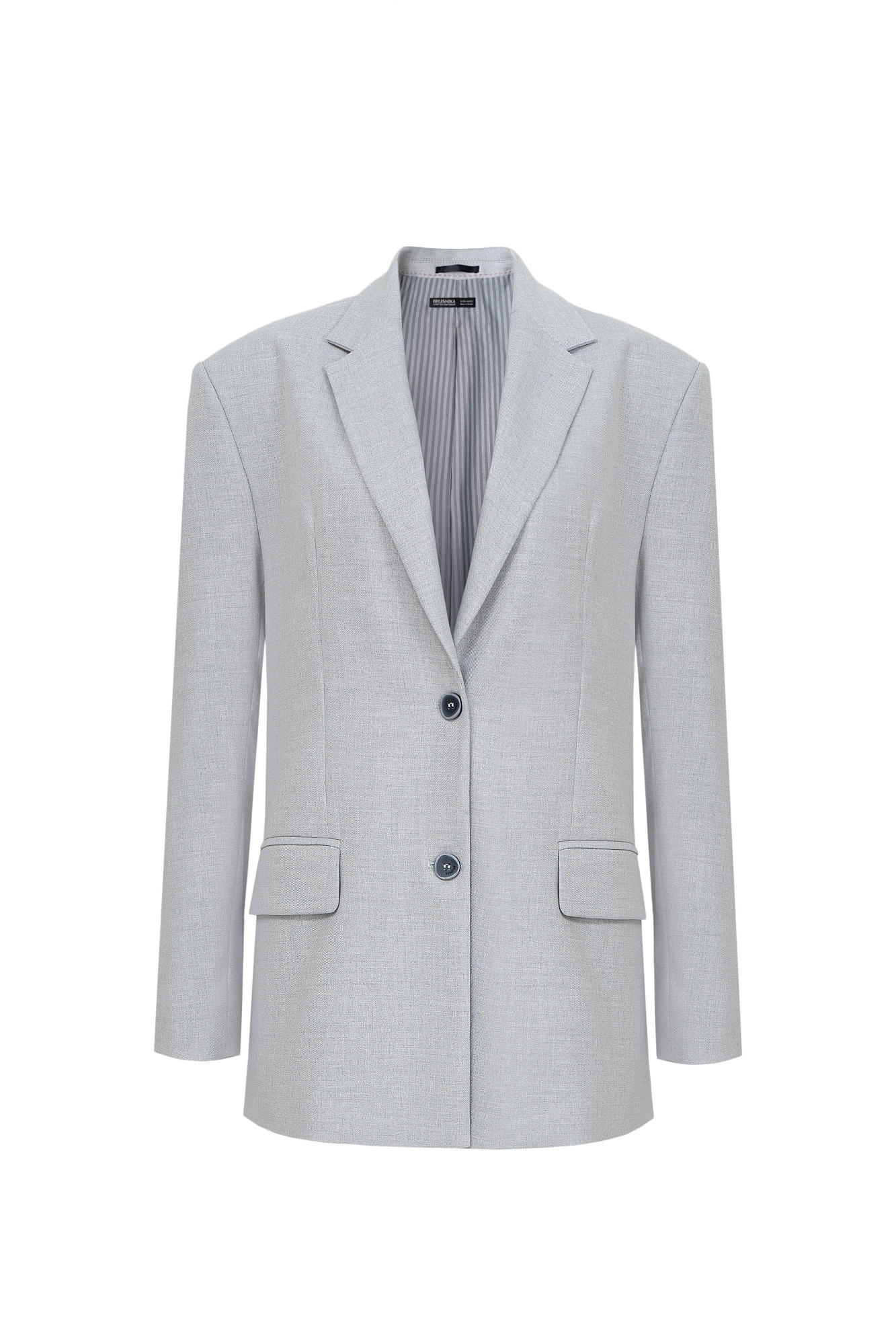 Однобортный oversize жакет из поливискозы. Модель прямого кроя с прямоугольными лацканами, манжетами на пуговицах и прорезными карманами с клапаном. Изделие на подкладке.