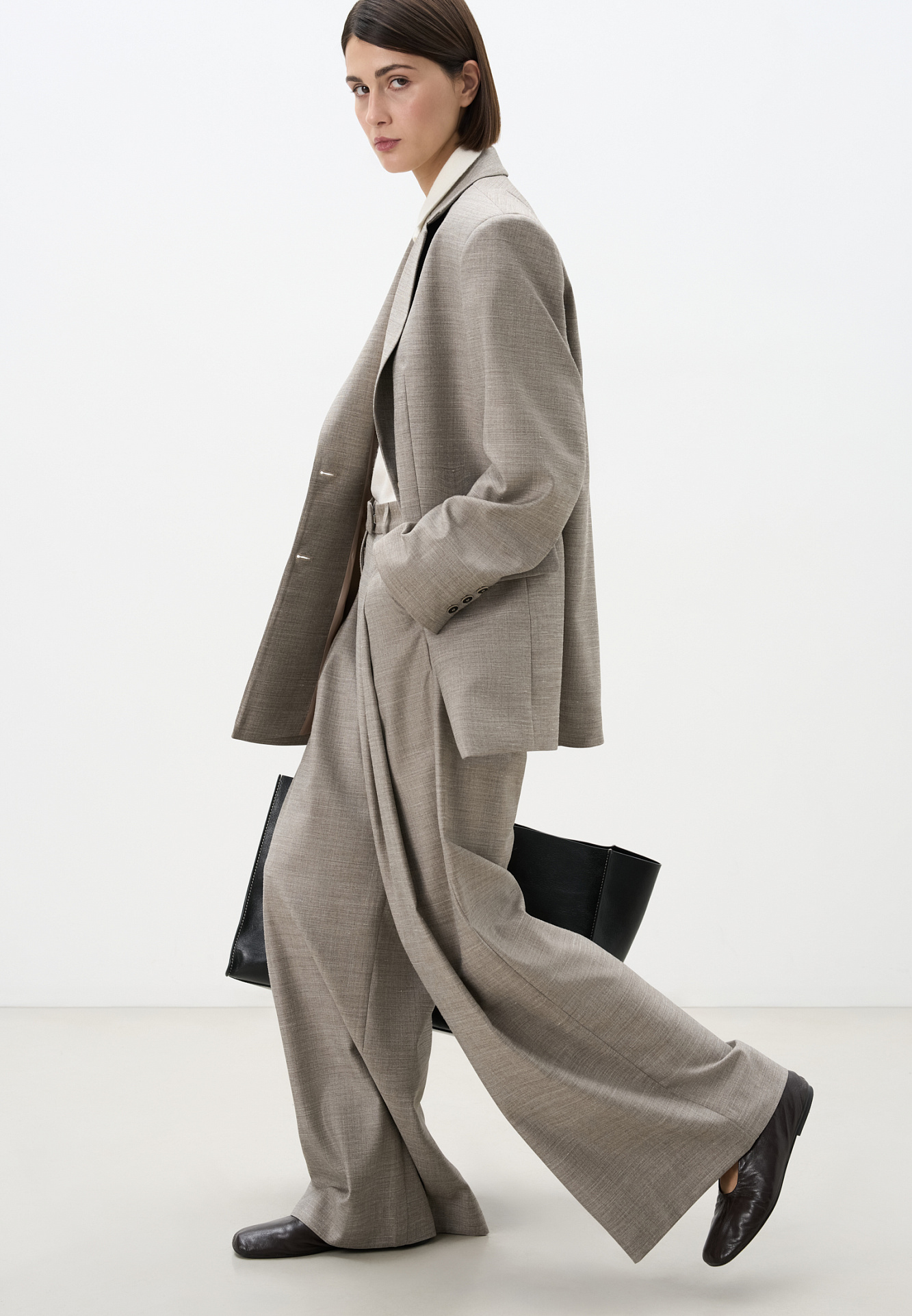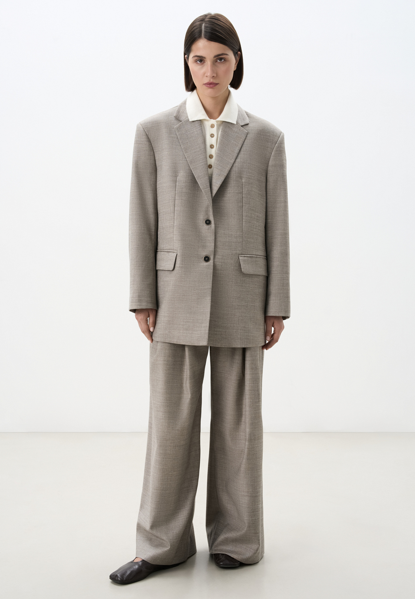 Классический жакет из фланели. Модель прямого кроя с лацканами и прорезными карманами с клапанами. Застежка на две пуговицы. Изделие на подкладке.