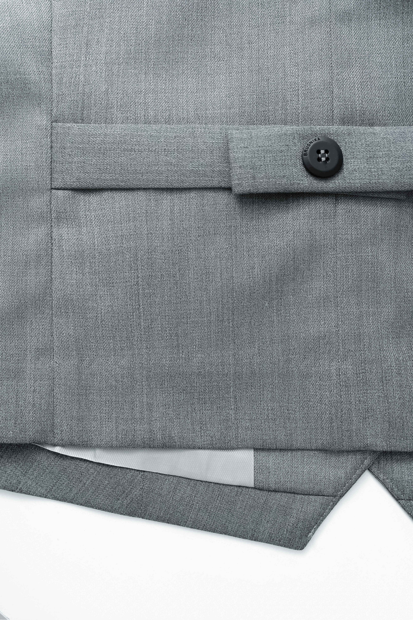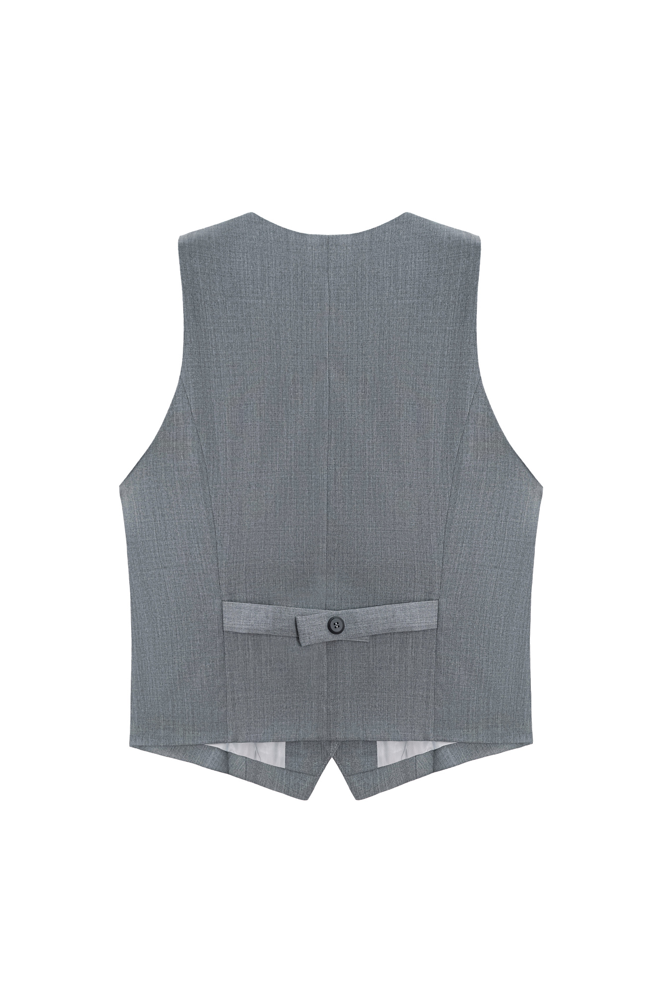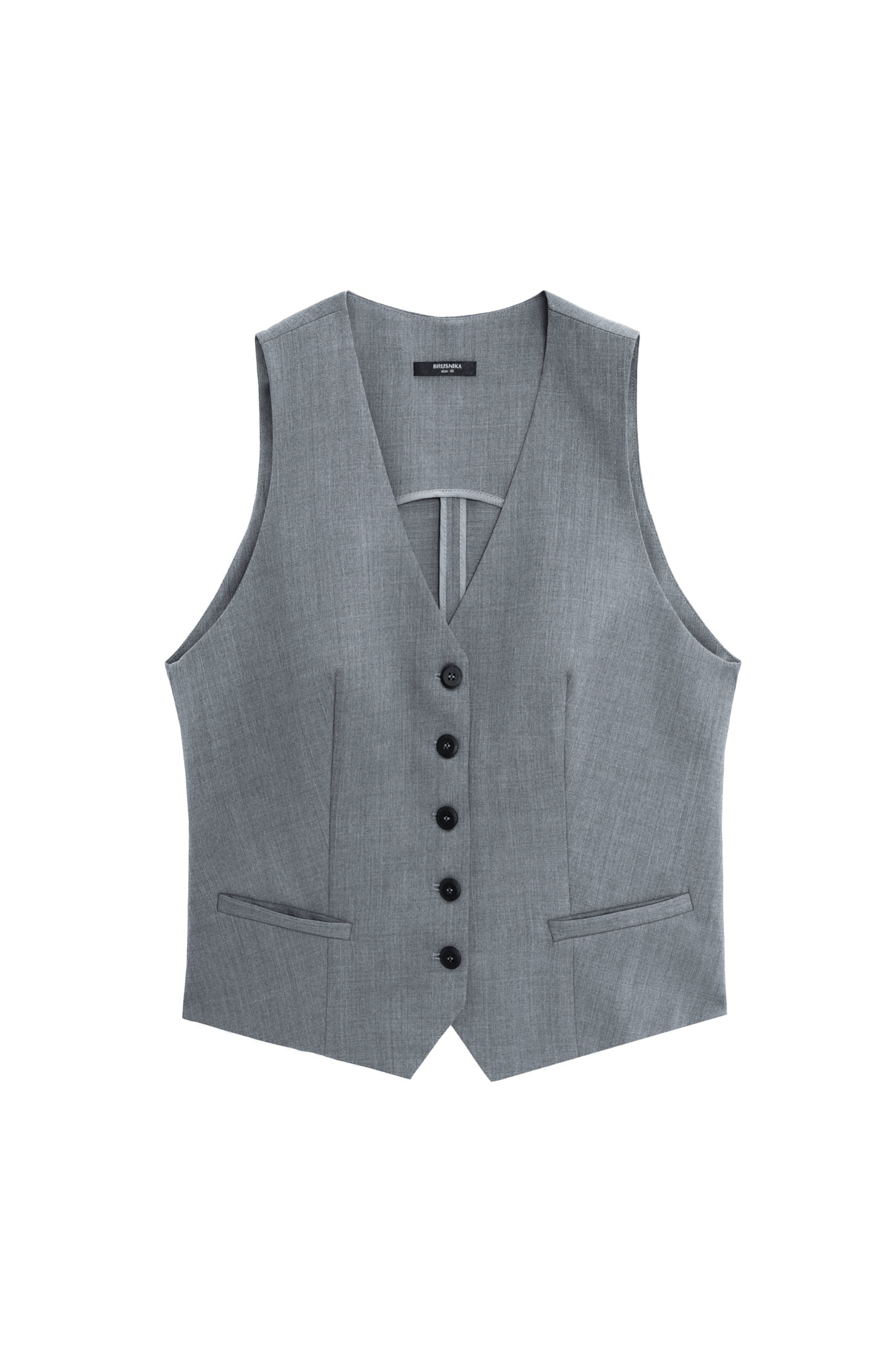 Классический жилет с имитацией карманов и v-образным вырезом. Застежка на пуговицы. Без подкладки.