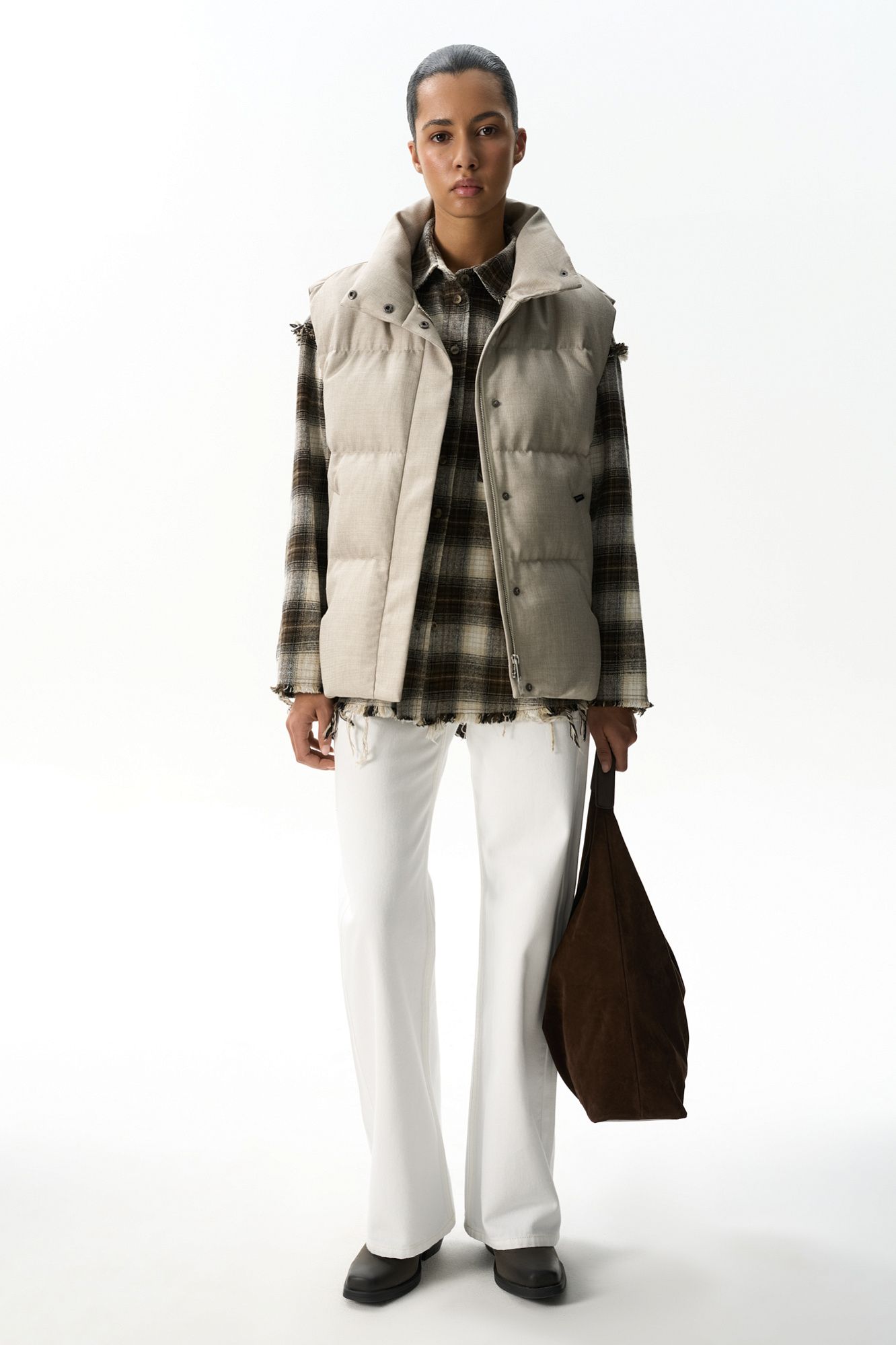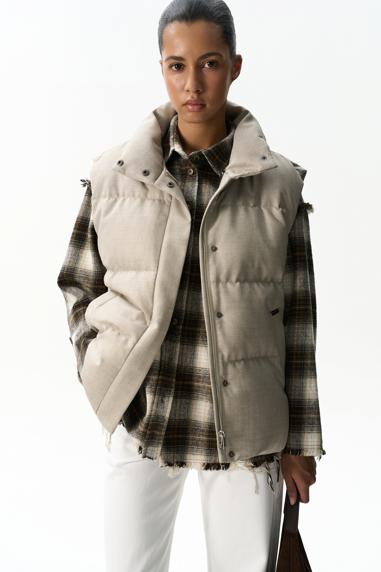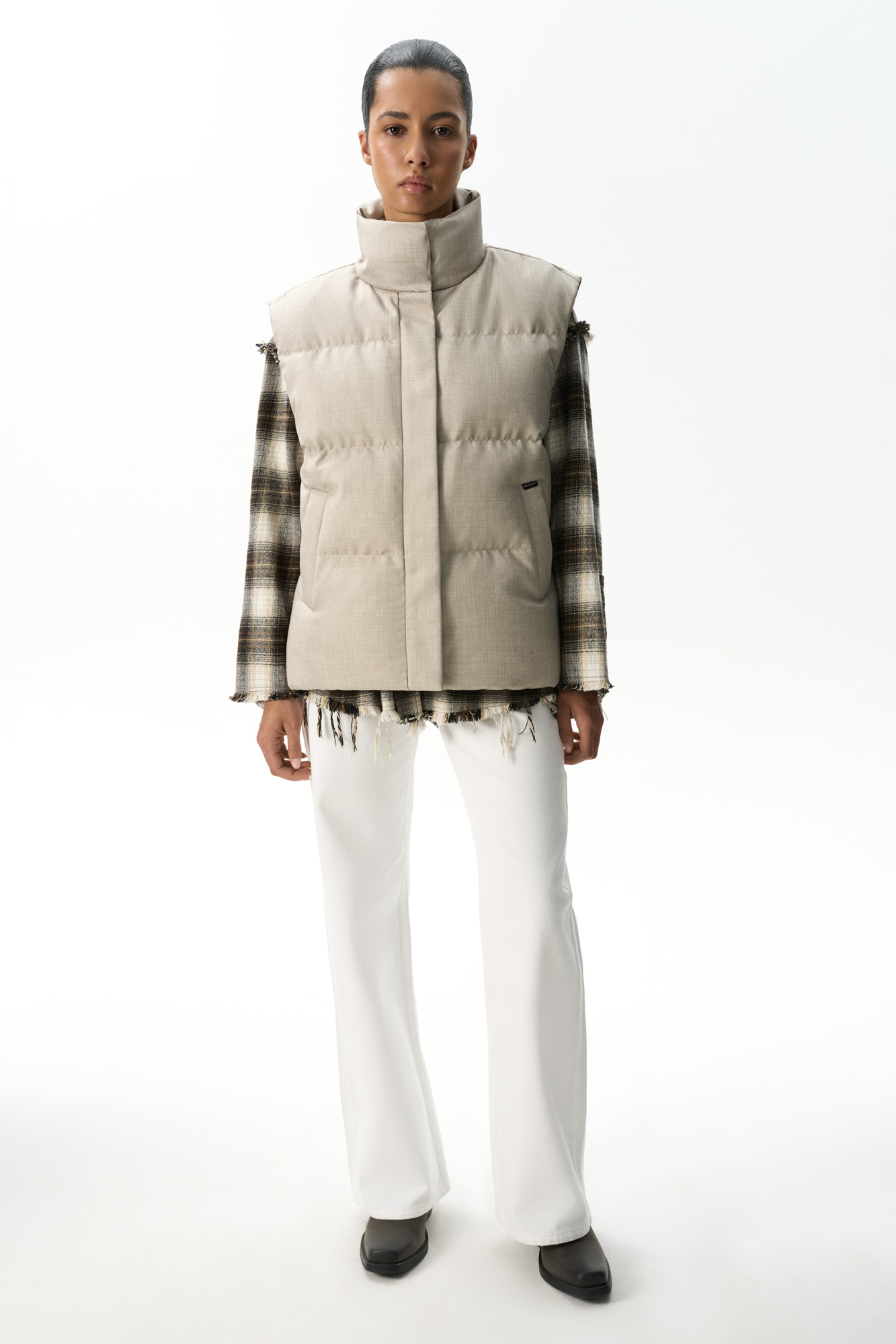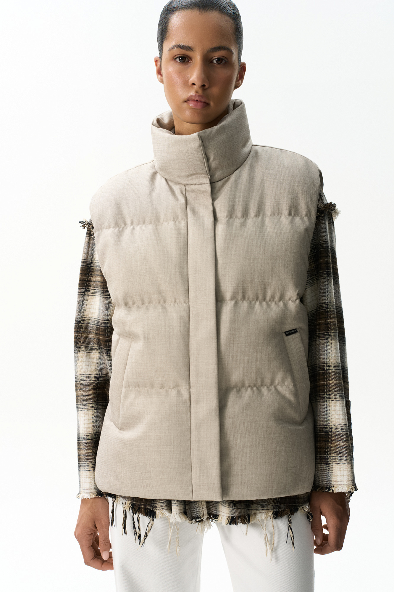 Жилет на пуху с воротником-стойкой