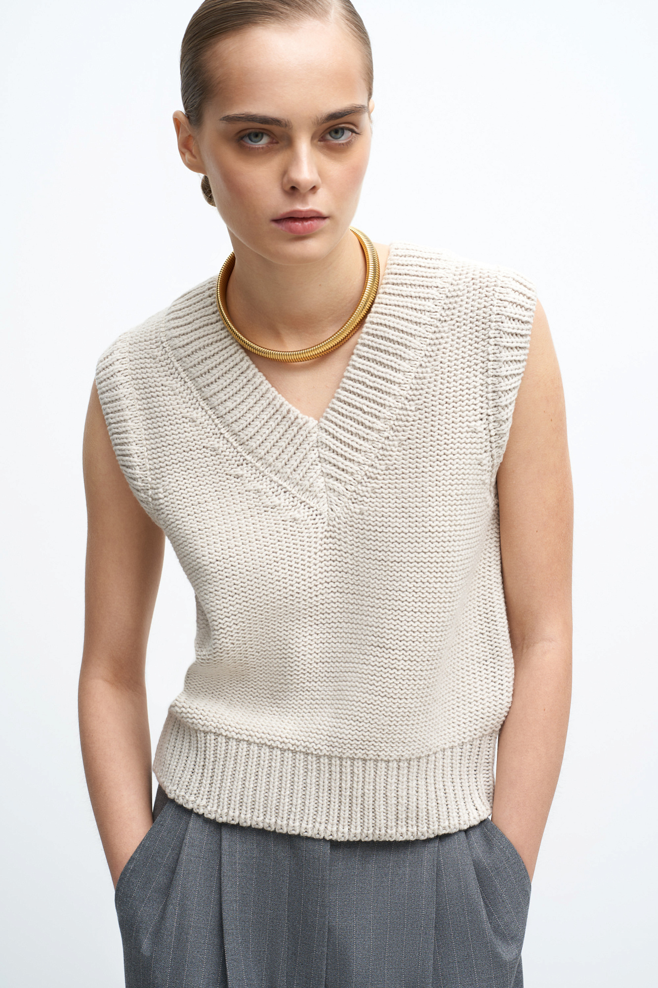 Трикотажный жилет из шерсти с V-образным вырезом