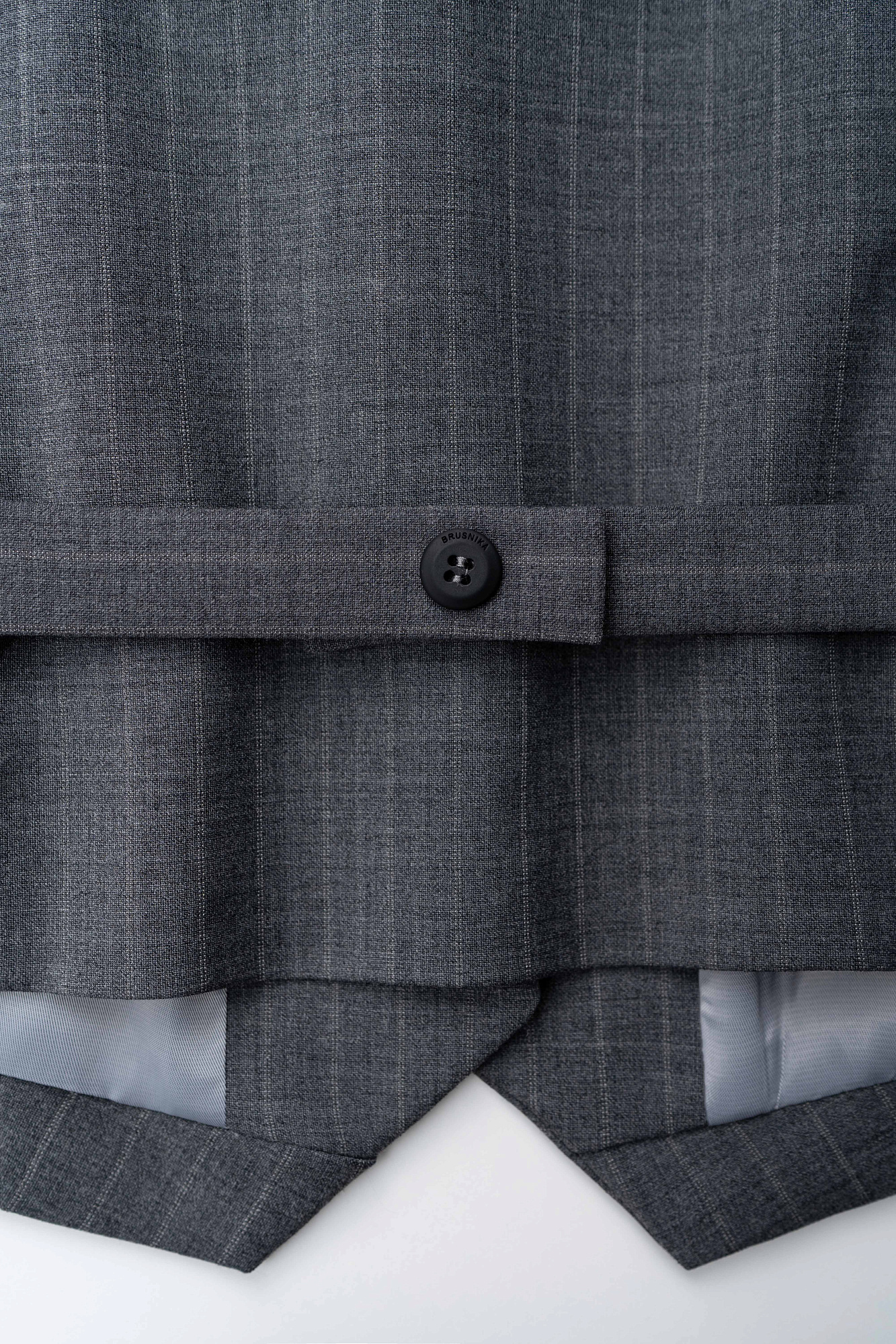 Температурный режим утюга — 150°С. Изделие на подкладке утюжат с лицевой стороны.