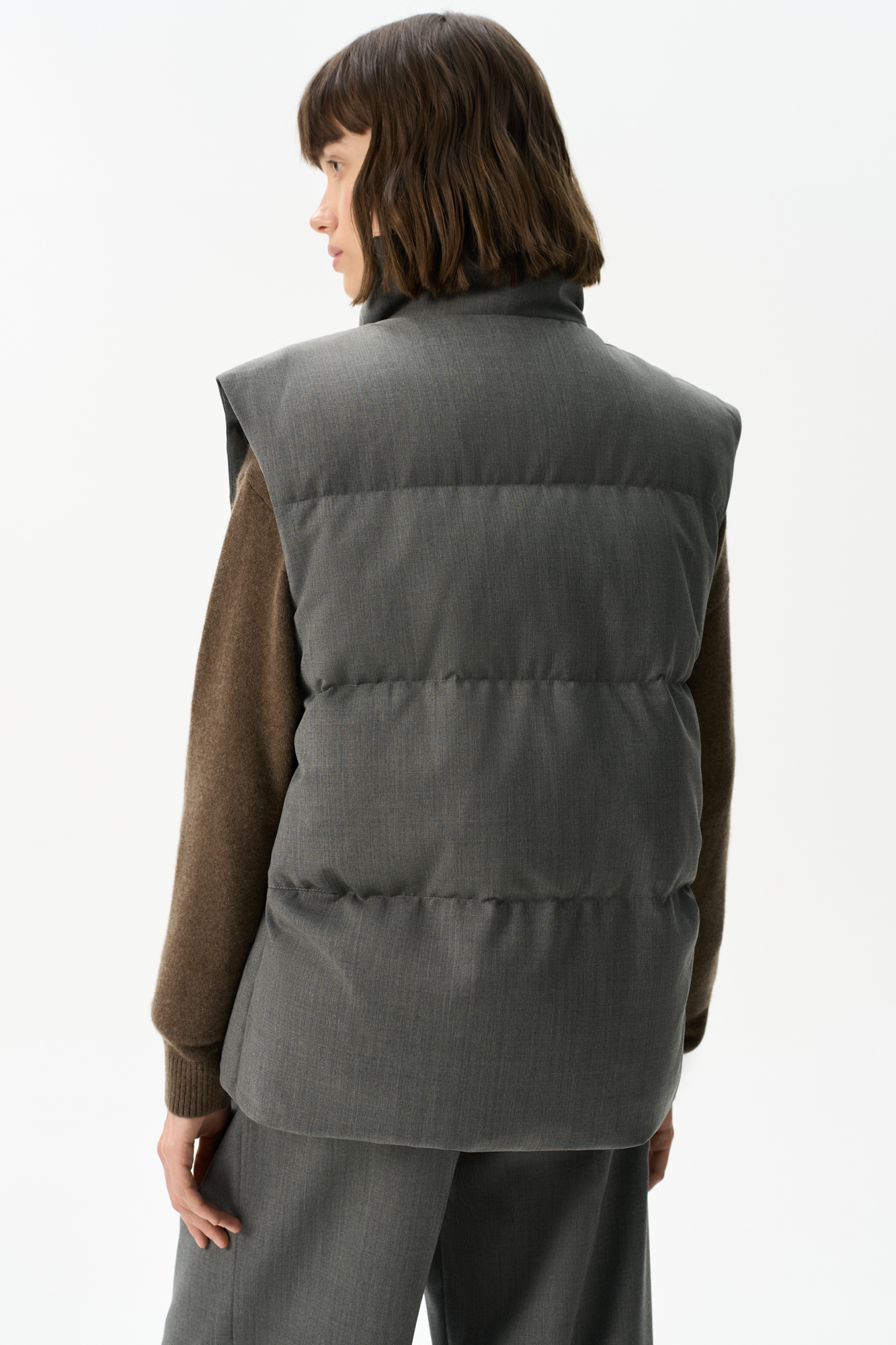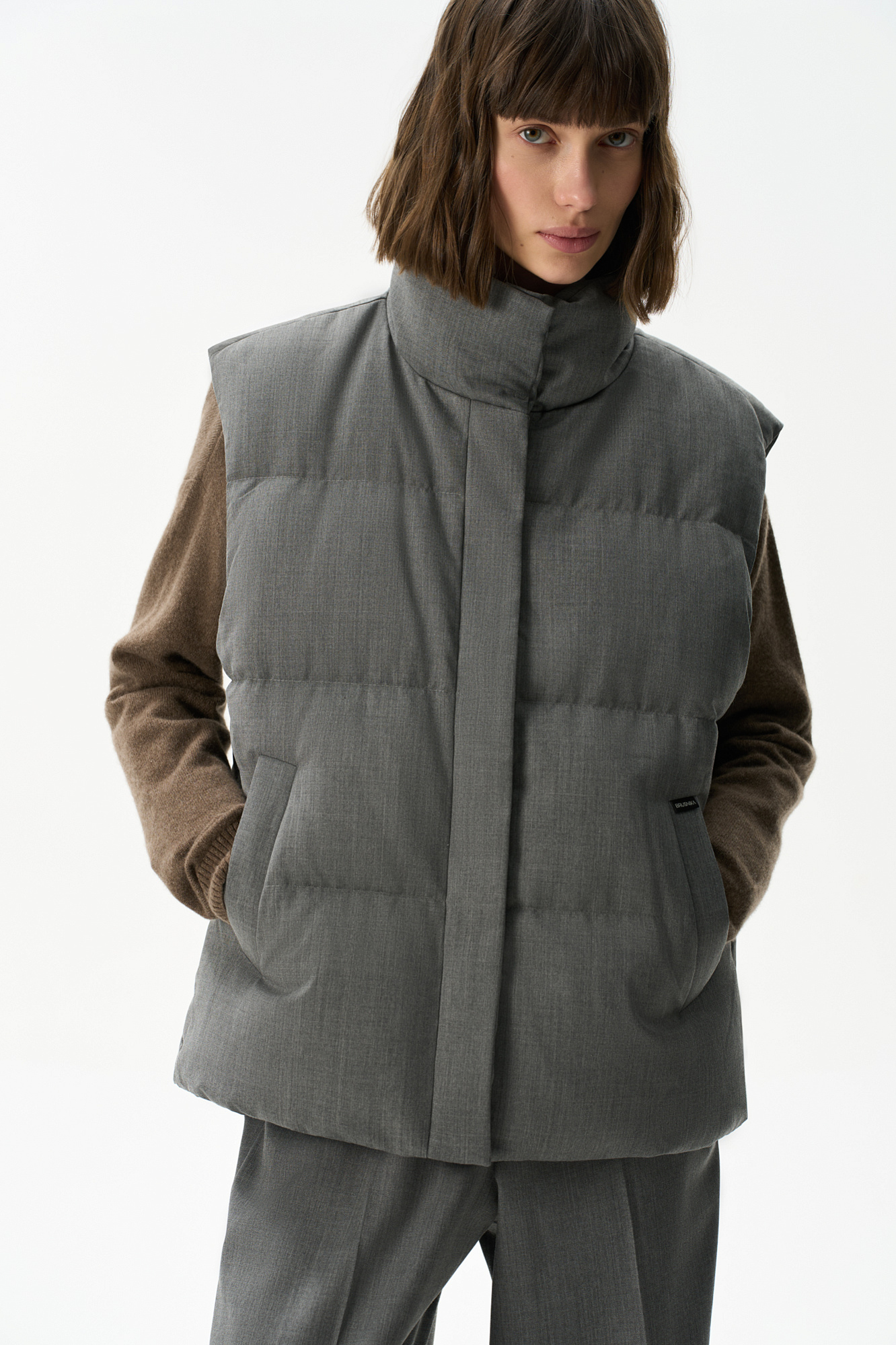 Жилет на пуху с воротником-стойкой
