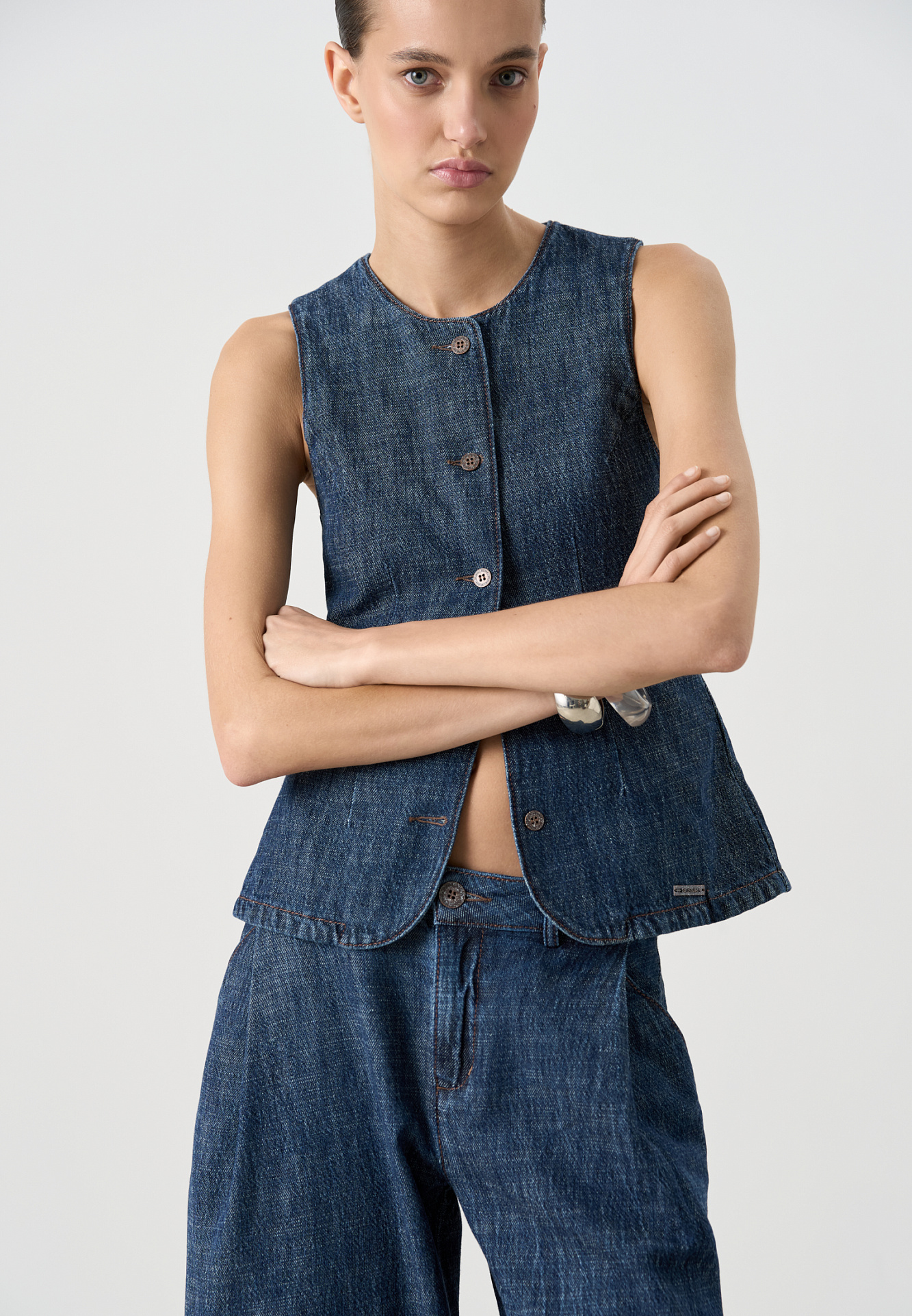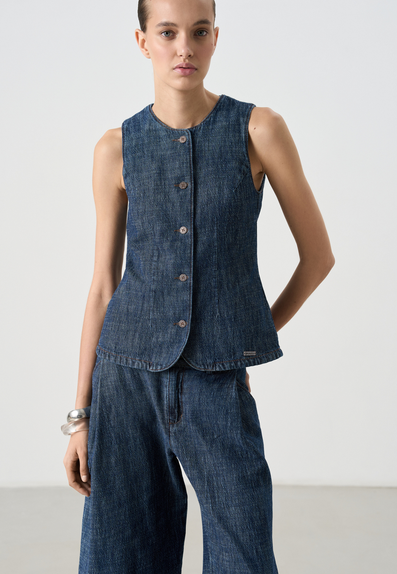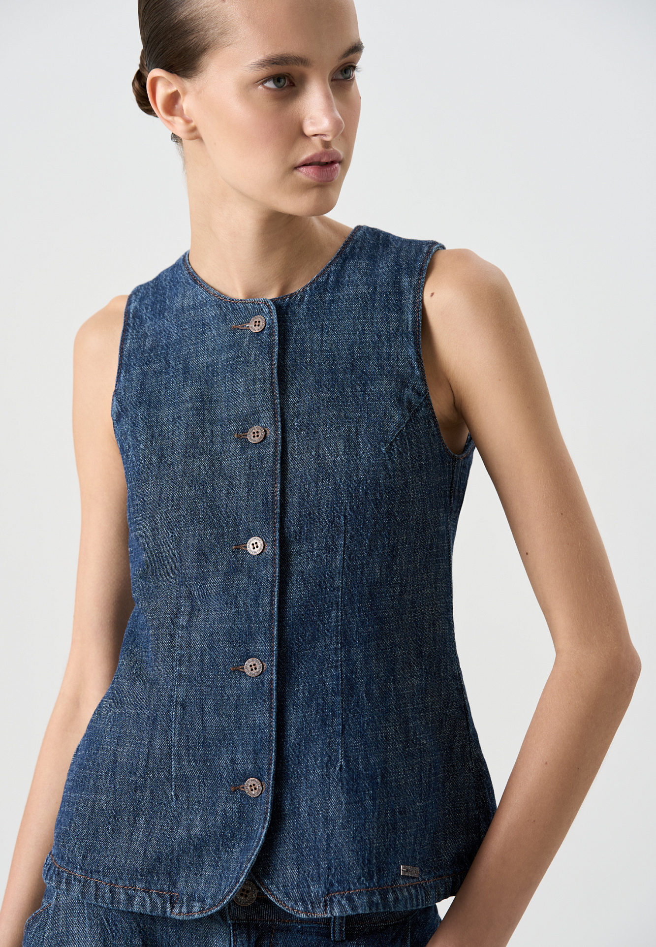 Приталенный джинсовый жилет