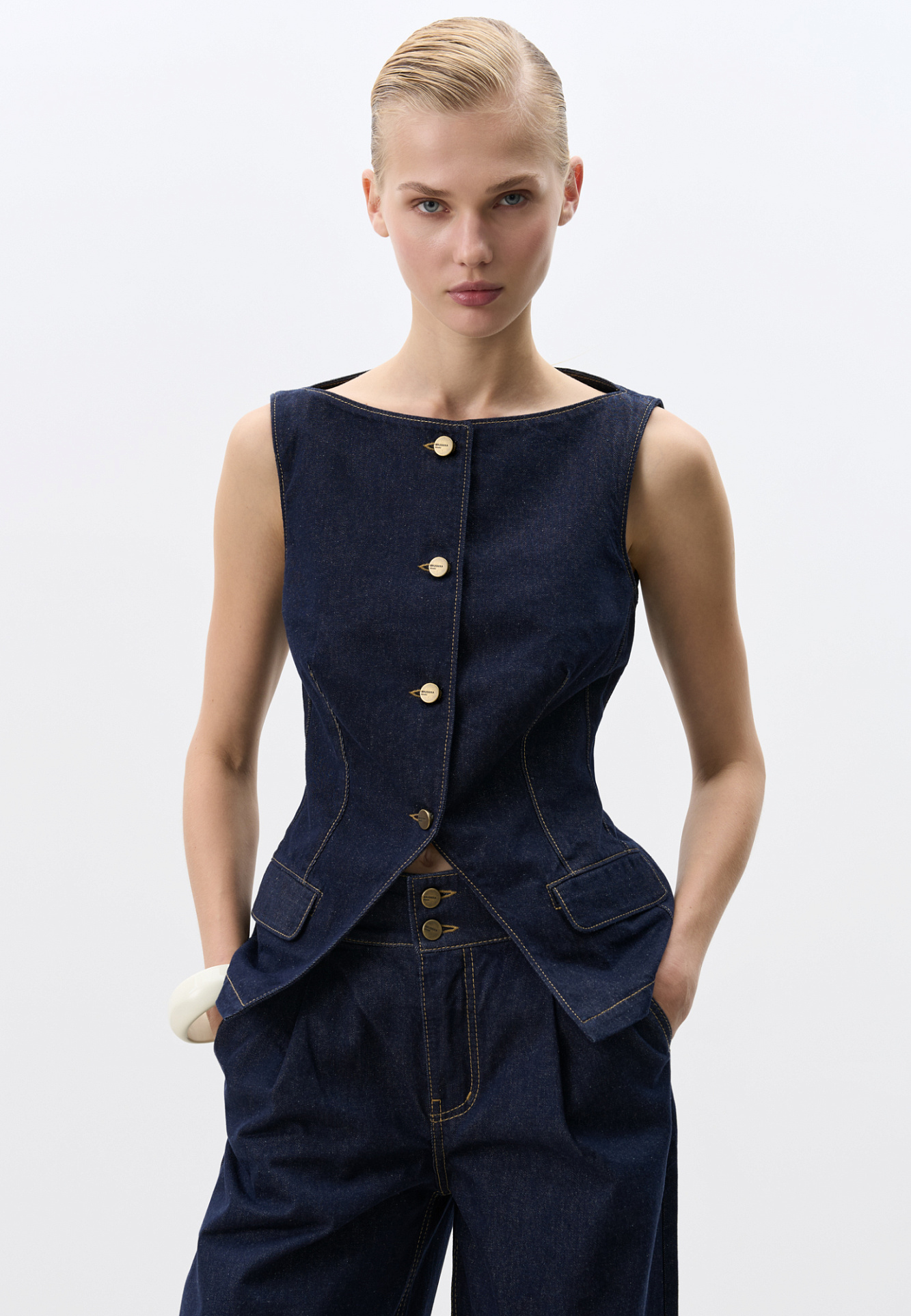 Приталенный джинсовый жилет