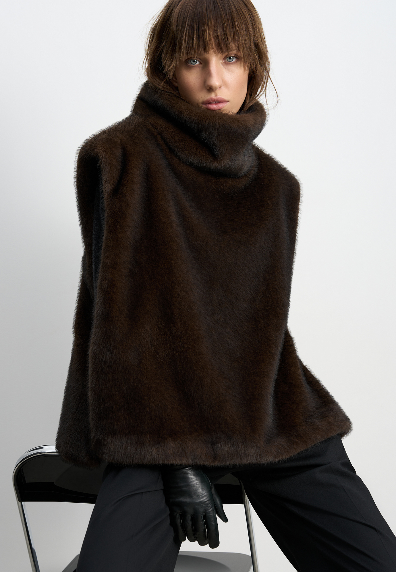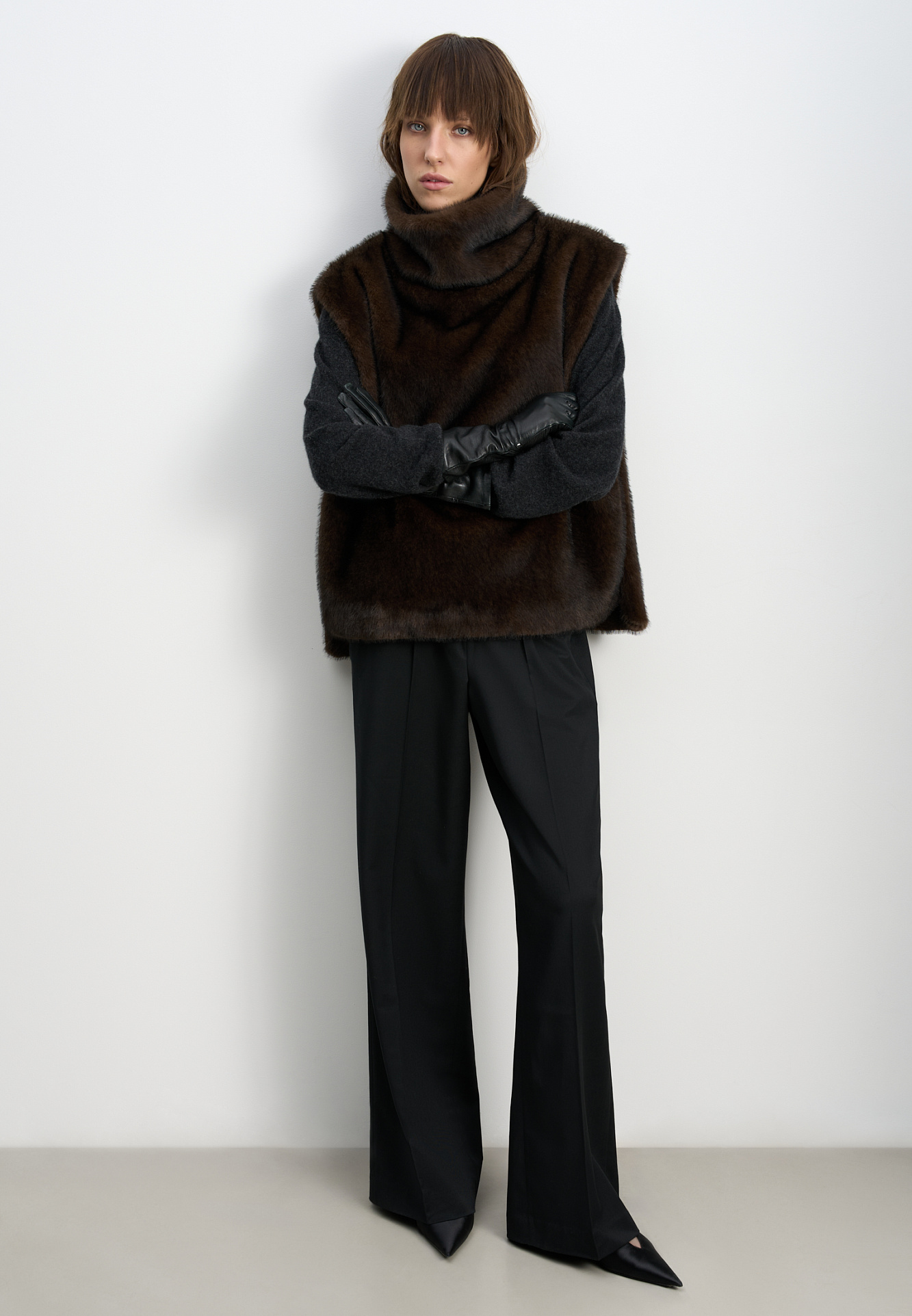 Жилет из экомеха с воротником-стойкой
